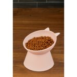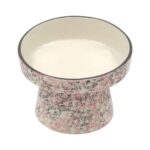 Desenli Yüksek Eğimli Seramik Kedi ve Köpek Mama Su Kabı, Pembe Renk