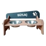Ahşap Kademeli, Eğimli, Çelik Kasa Mama ve Su Kabı Standı, Özel Isimli, Şık ve Kullanışlı