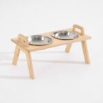Ahşap Standlı Çelik Mama ve Su Kabı, Şık ve Kullanışlı Evcil Hayvan Ürünü