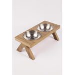 Ikili Ahşap Kedi Köpek Mama ve Su Kabı Standı Gri Çelik Mat 2’li
