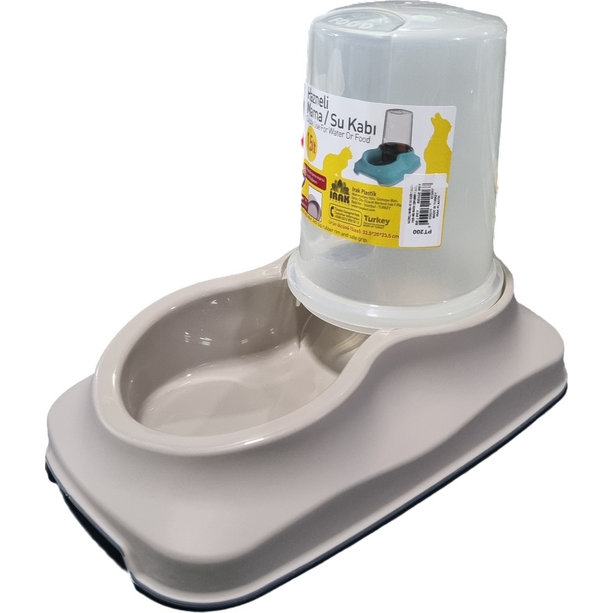 1,5l Gri Otomatik Hazneli Mama ve Su Kabı, 31X19 cm