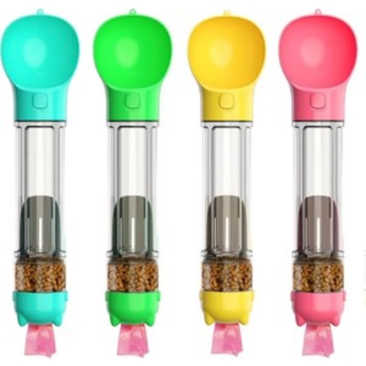 4’ü 1 Arada Taşınabilir Pet Su ve Mama Kabı, Temizleme Poşeti ile 500 ml Sarı