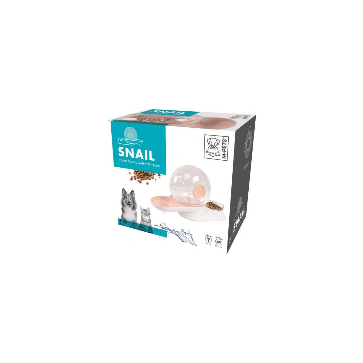 60501699 M-Pets Snaıl Hazneli Su ve Mama Kabı Pink 2800ML-240GR