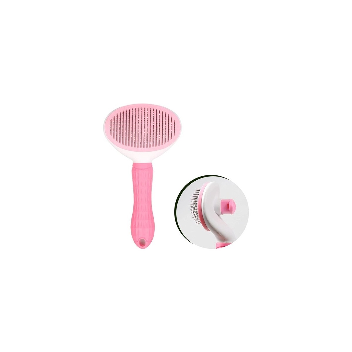 Kedi Köpek Tüy Toplayıcı Kendini Temizleyebilen Ergonomik Saplı Evcil Hayvan Tarağı Pembe (5067)