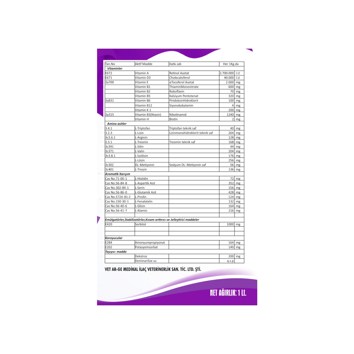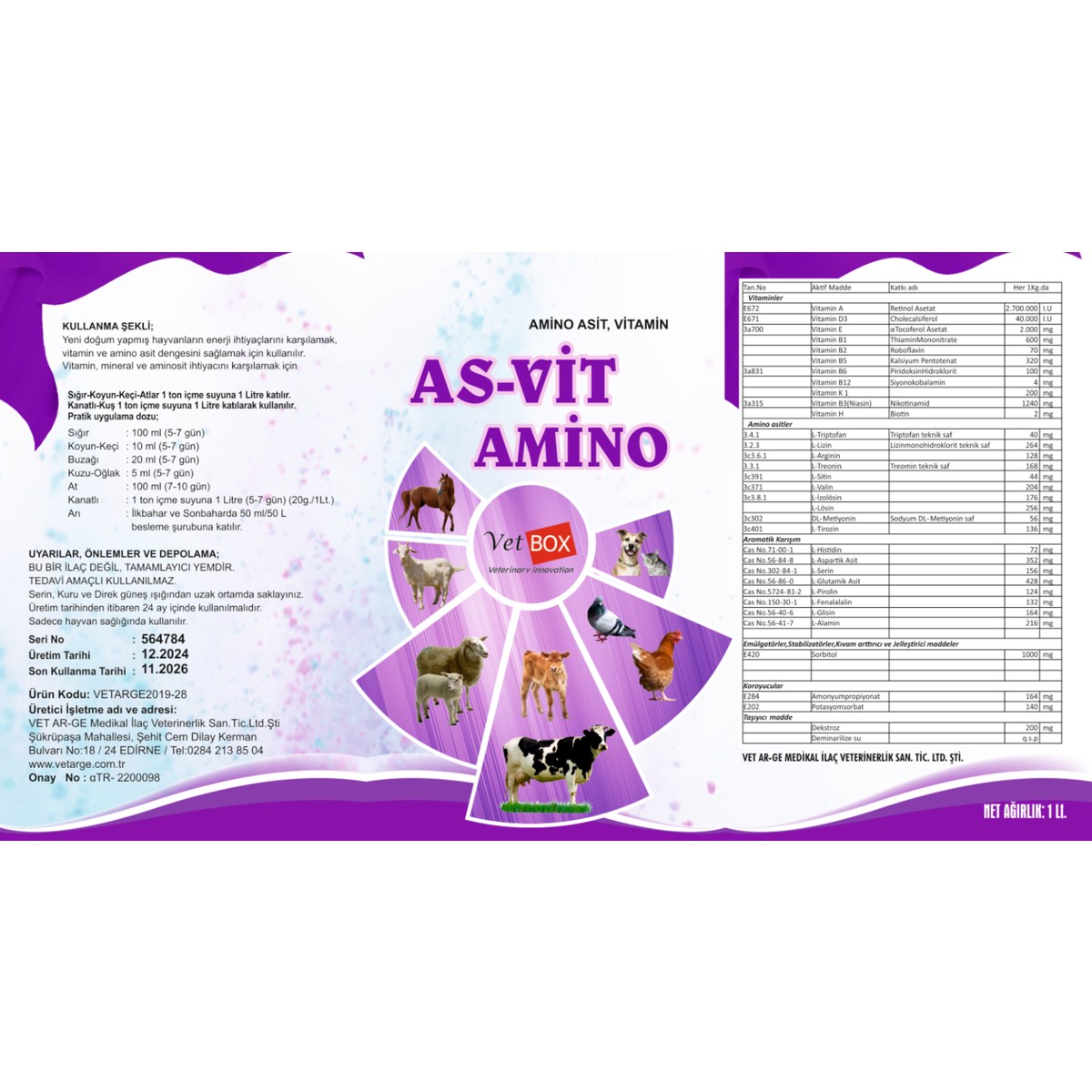 Asvit 1lt Zengin Içerikli Hayvan Destek Minerali (Amino Asit,vitamin)-(Ufakbaş-Büyükbaş-Kuş Grubu)