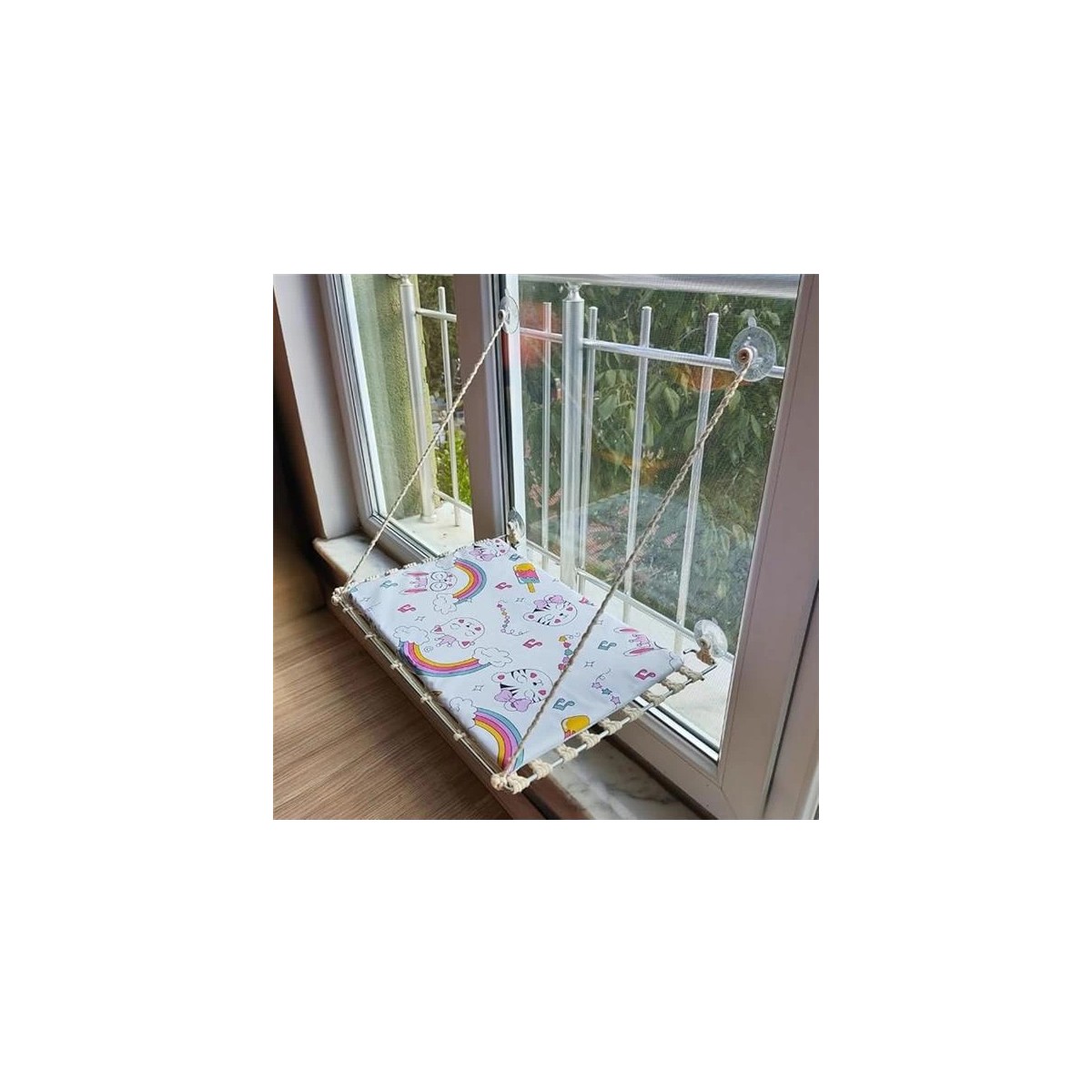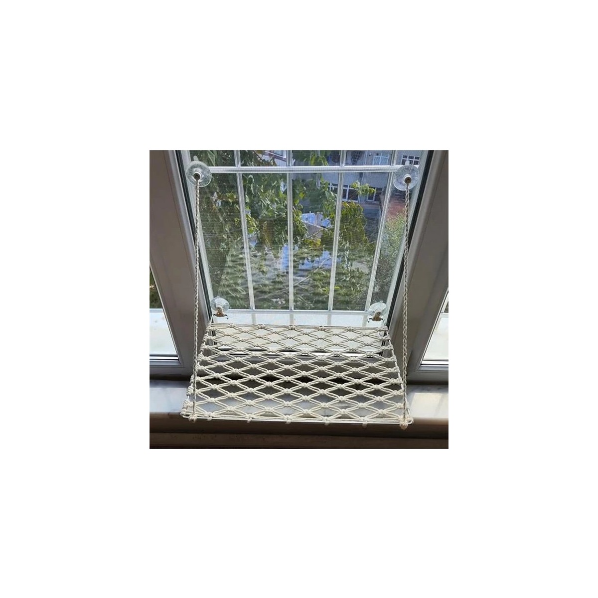 Makrome Vantuzlu Sade Cam Kedi Yatağı, Pamuklu Matlı