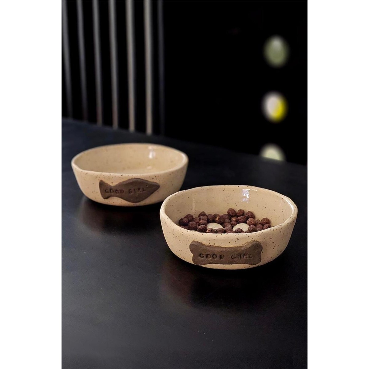 Bej Seramik Kedi ve Köpek Mama Su Kabı, Şık ve Kullanışlı, 0-1 L Hacim