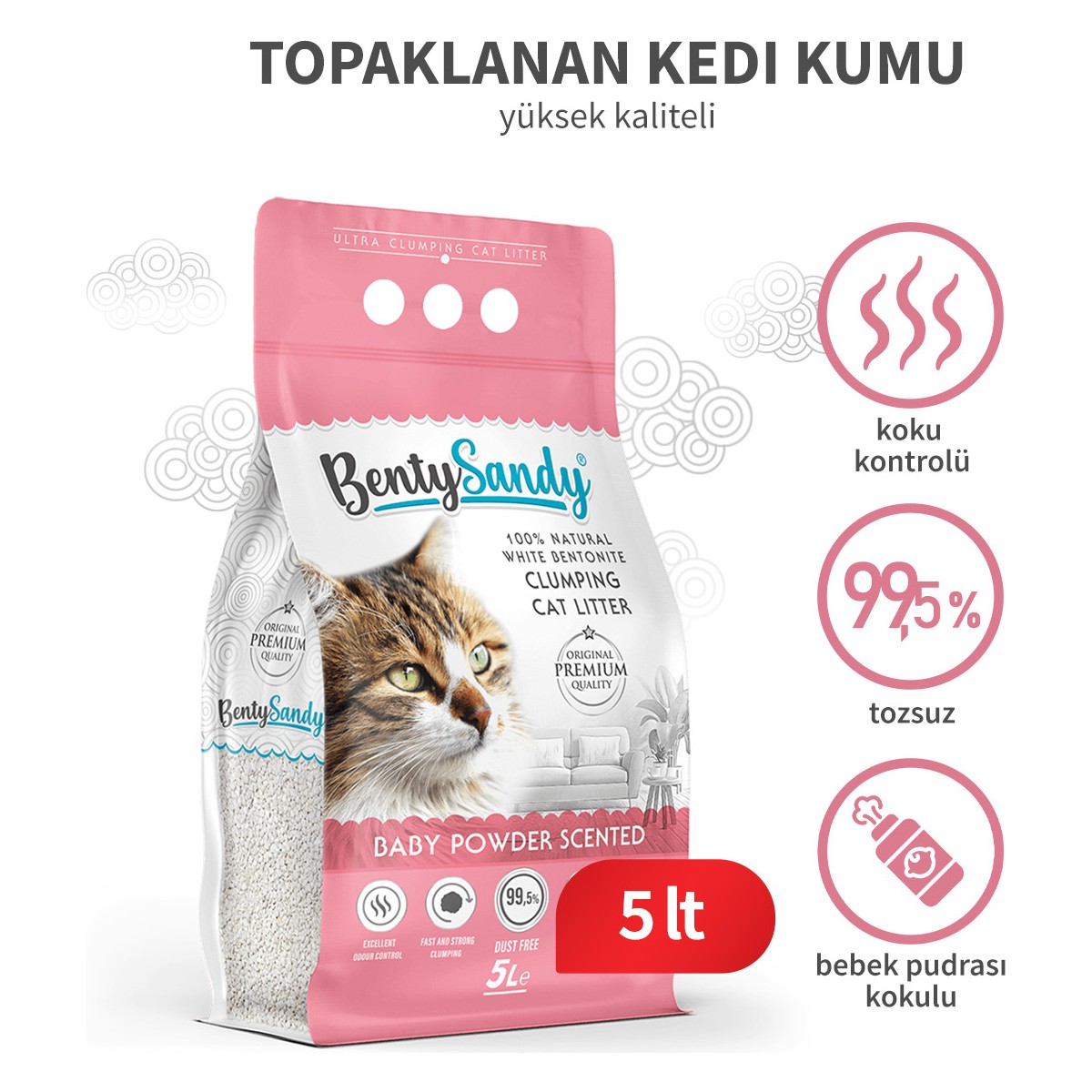 BentySandy Baby Powder Bebek Pudrası Kokulu Topaklanan Kedi Kumu 5 Lt