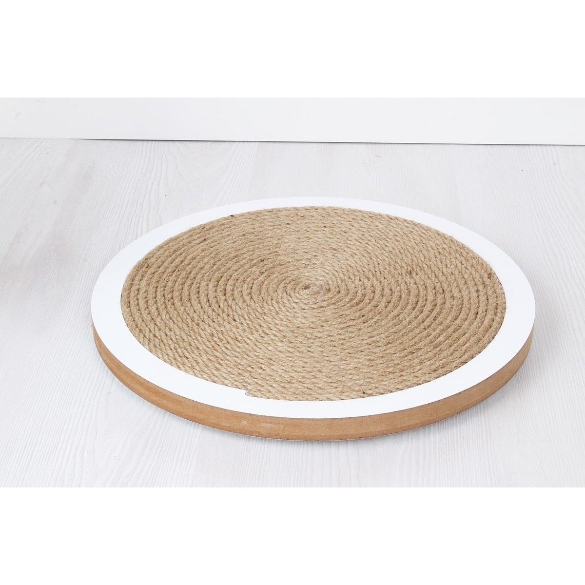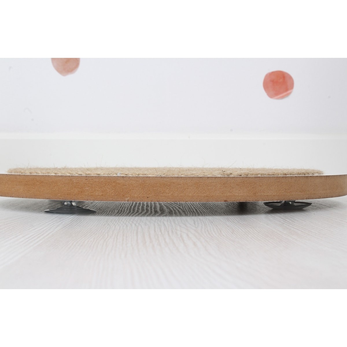 Beyaz Yuvarlak Vantuzlu Kedi Tırmalama Tahtası, Eğlenceli ve Güvenli Kullanım Sağlar.