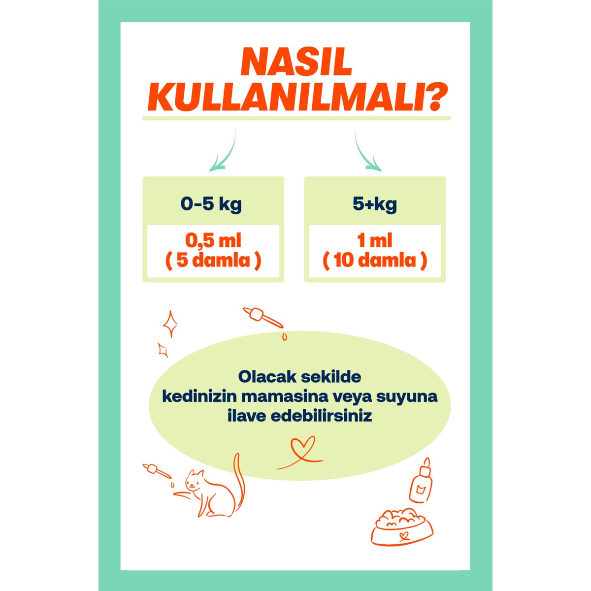 Çok memnun kaldım kedime iki yıldır kilo aldiramiyordum OMEGA 3 ve vitamini kullandım iki haftada 2_4 kilo aldı. Köpeğime de kullanıyorum yaşı ilerlediği için vücudunda küçük küçük yaralar çıkıyordu artık çıkmıyor.