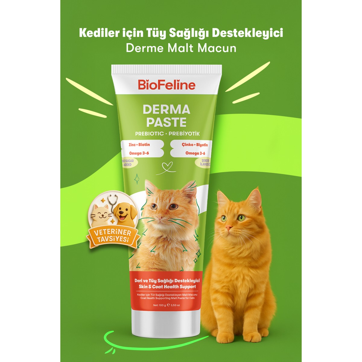 BioFeline Kediler İçin Derma Malt Macun – Tüy Sağlığı Destekleyici 100g