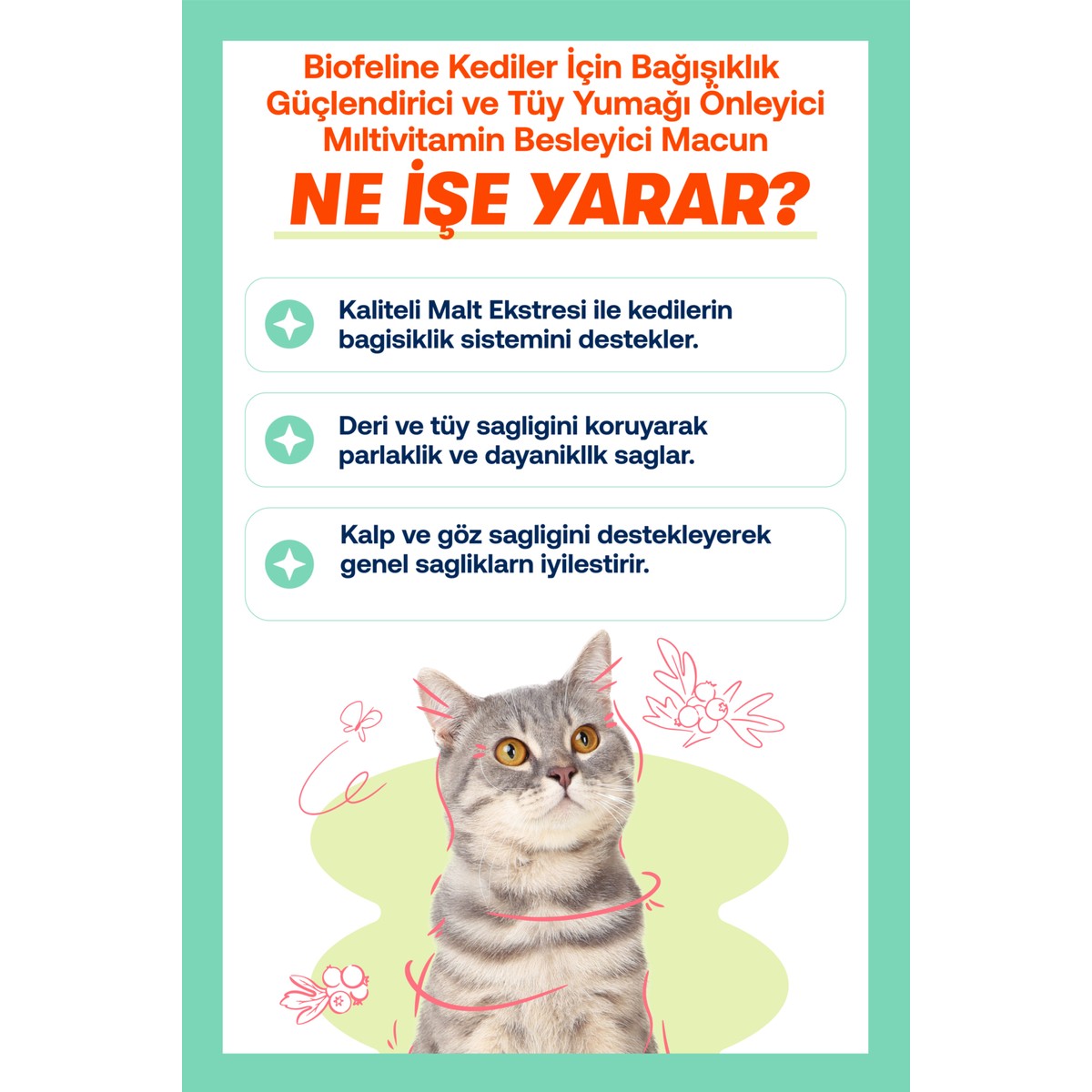 Biofeline Multi Paste Kedi Ödülleri 200 gr Yetişkin Kediler için Bağışıklık Güçlendirici ve Tüy Yumağı Önleyici