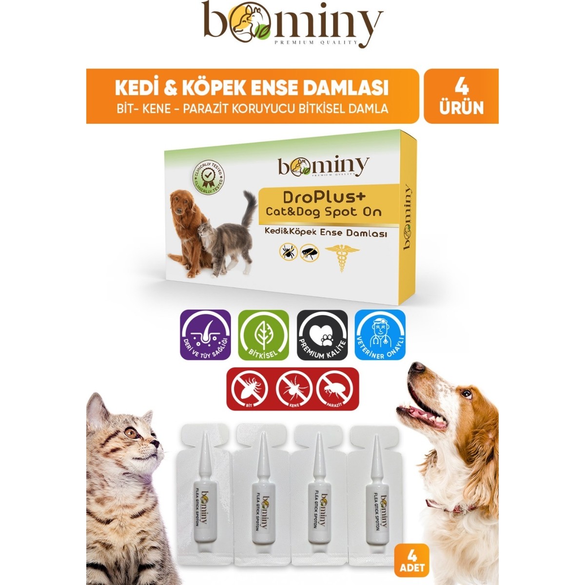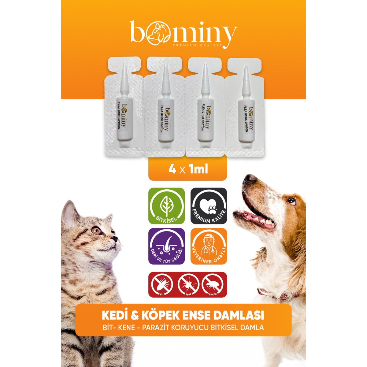 Bominy Pet Kedi Köpek Dış Parazit Ense Damla Hijyen Tüy ve Deri Bakımı 4 Adet 1 Ml Dış Parazit