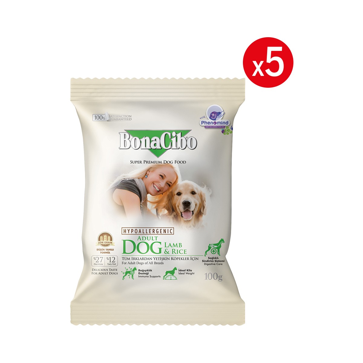 BonaCibo Adult Dog Kuzulu ve Pirinçli Yetişkin Köpek Maması, 100 gr x 5 Adet, Tüm Irklar Için, Doğal, Şeker Içermez
