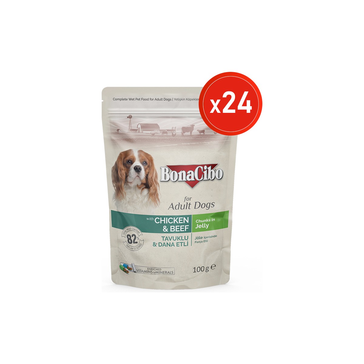 Jöleli Tavuklu Dana Etli Pouch Yaş Köpek Maması, 100 gr x 24 Adet, Tüm Irklar Için, Şekersiz