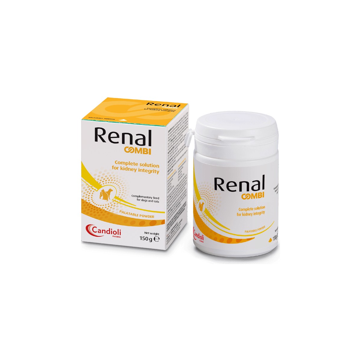 Renal COMBI, hiperfosfatemiyi ve metabolik asidozu kontrol etmek için Kalsiyum karbonat, Kalsiyum laktat glukonat, Kitosan, Sodyum bikarbonat sağlar. Renal COMBI’de bulunan frukto-oligosakkaritler, Zeytinyağı polifenolleri, Lactobacillus acidophilus ve vitaminler, antioksidan savunmayı ve normal bobrek işlevselliğini destekler. Yetişkin köpekler ve kediler için.