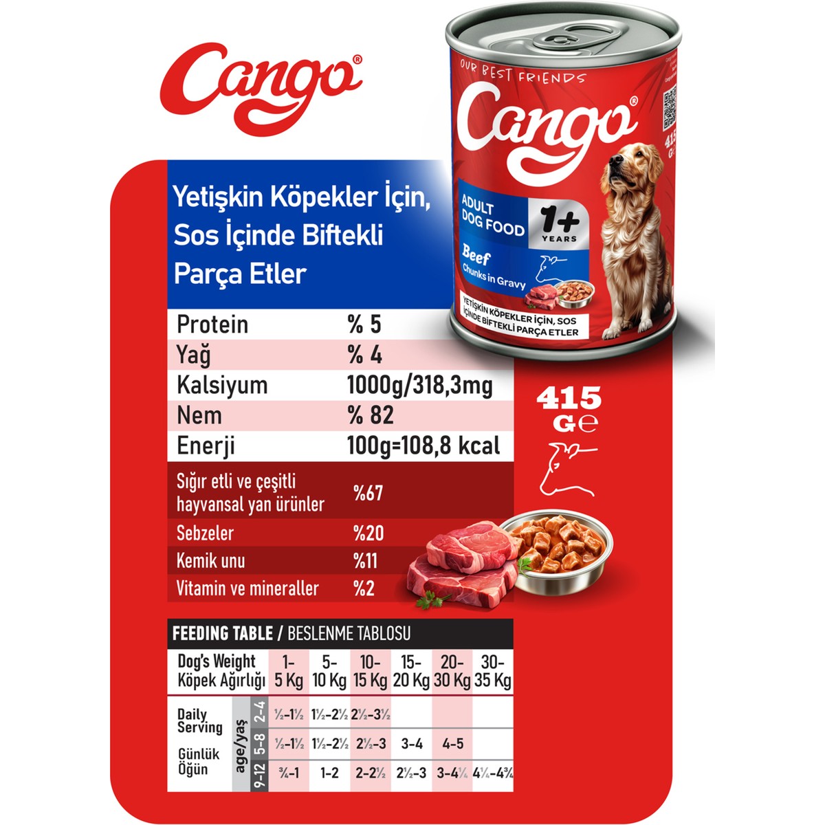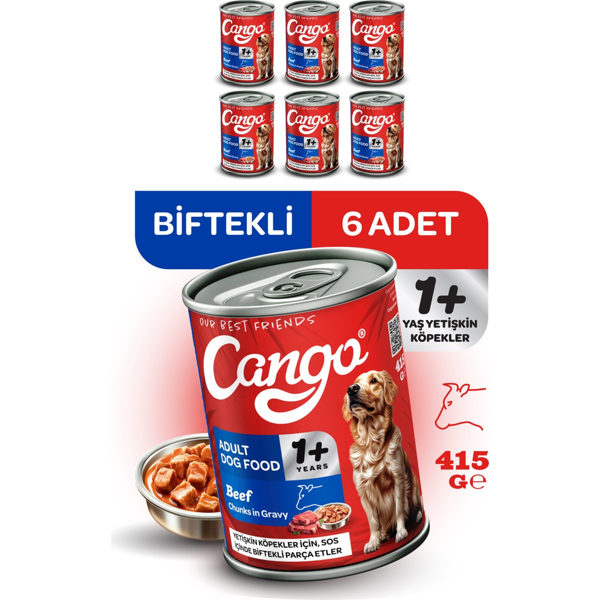 Cango Yaş Yetişkin Köpek Maması Etli 415GR 6lı