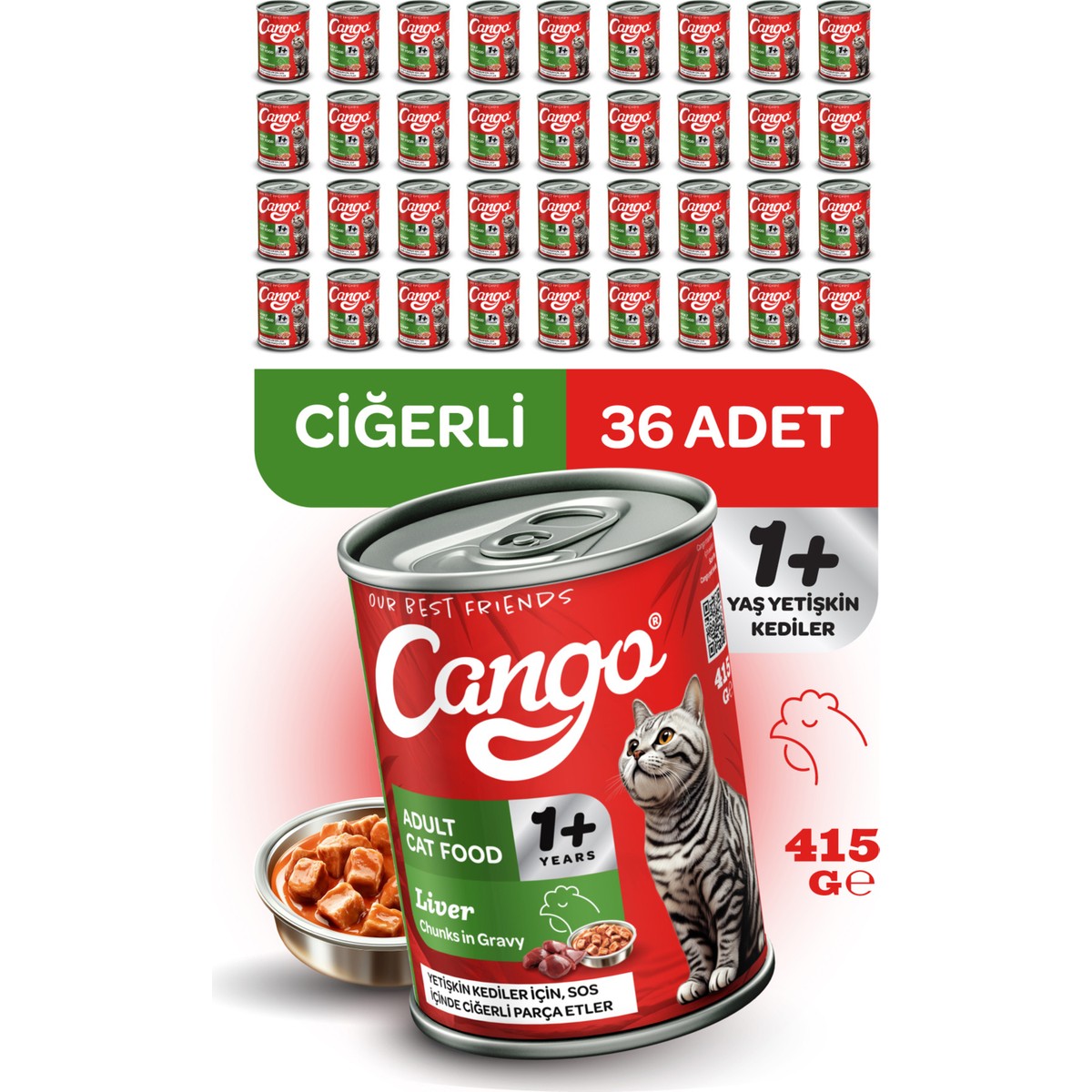 Cango Yetişkin Yaş Kedi Maması Ciğerli 415GR 36Lı