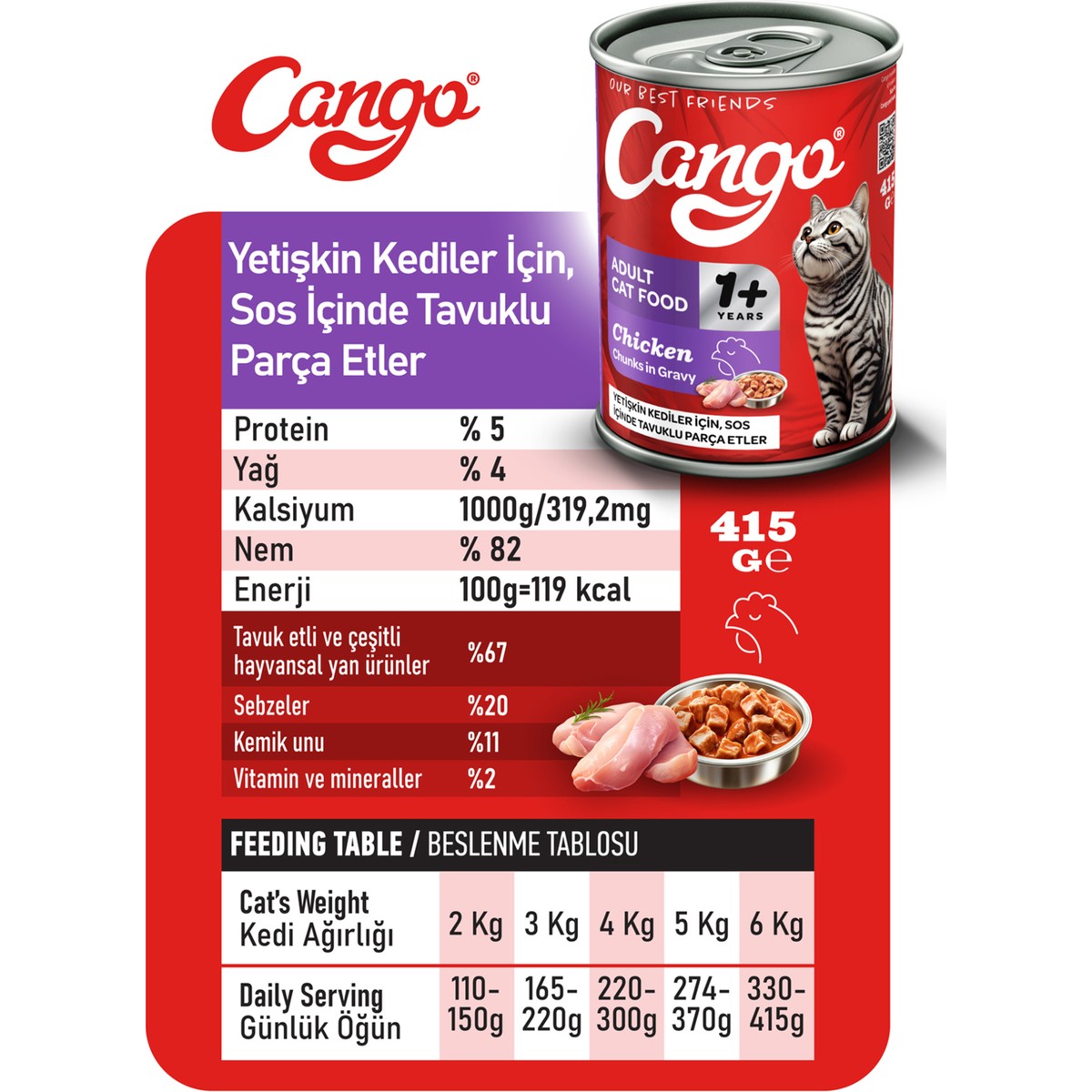 Cango Yetişkin Yaş Kedi Maması Tavuklu 415GR 24LÜ