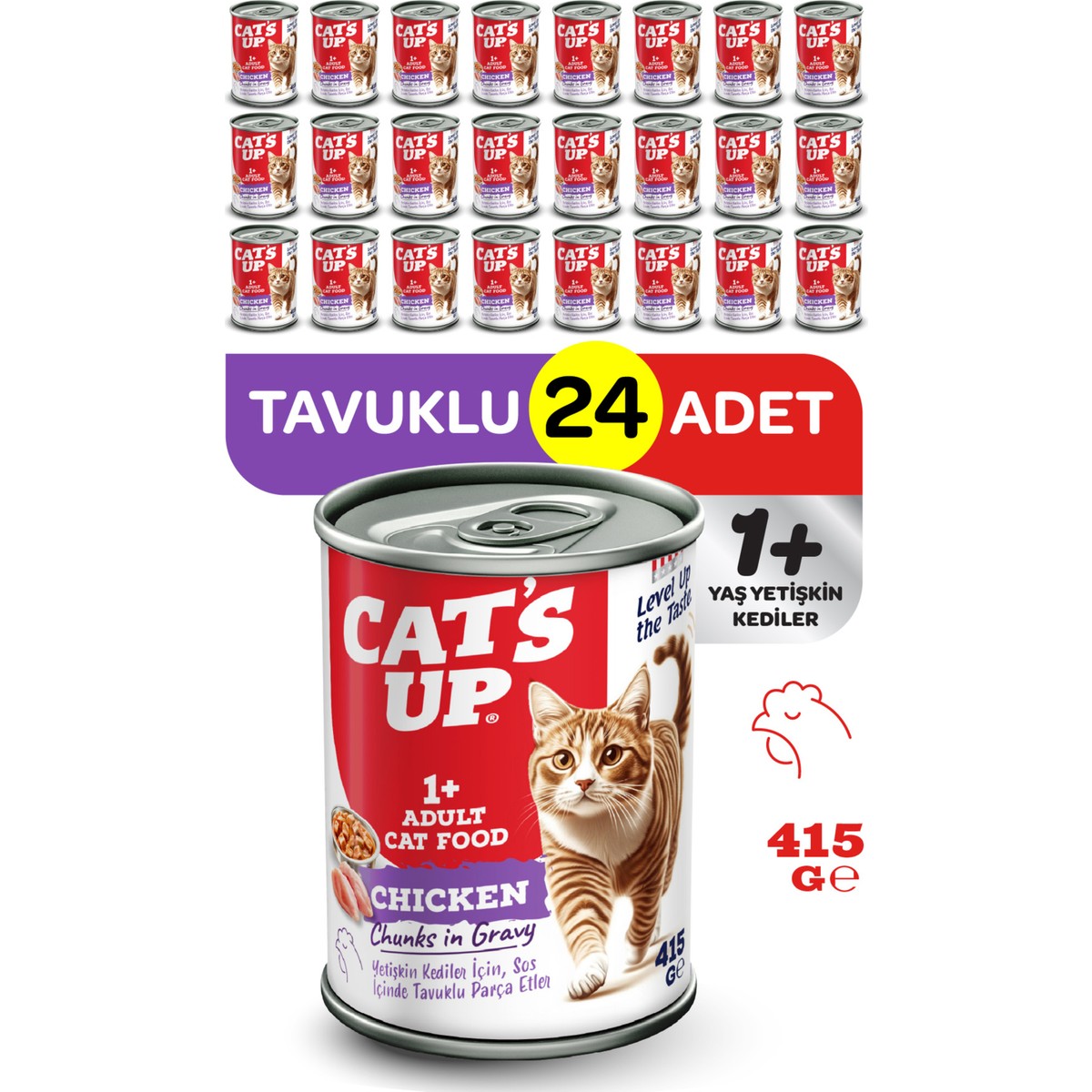 Cat’s Up Cats Up Yaş Yetişkin Kedi Maması Tavuklu 415GR 24LÜ