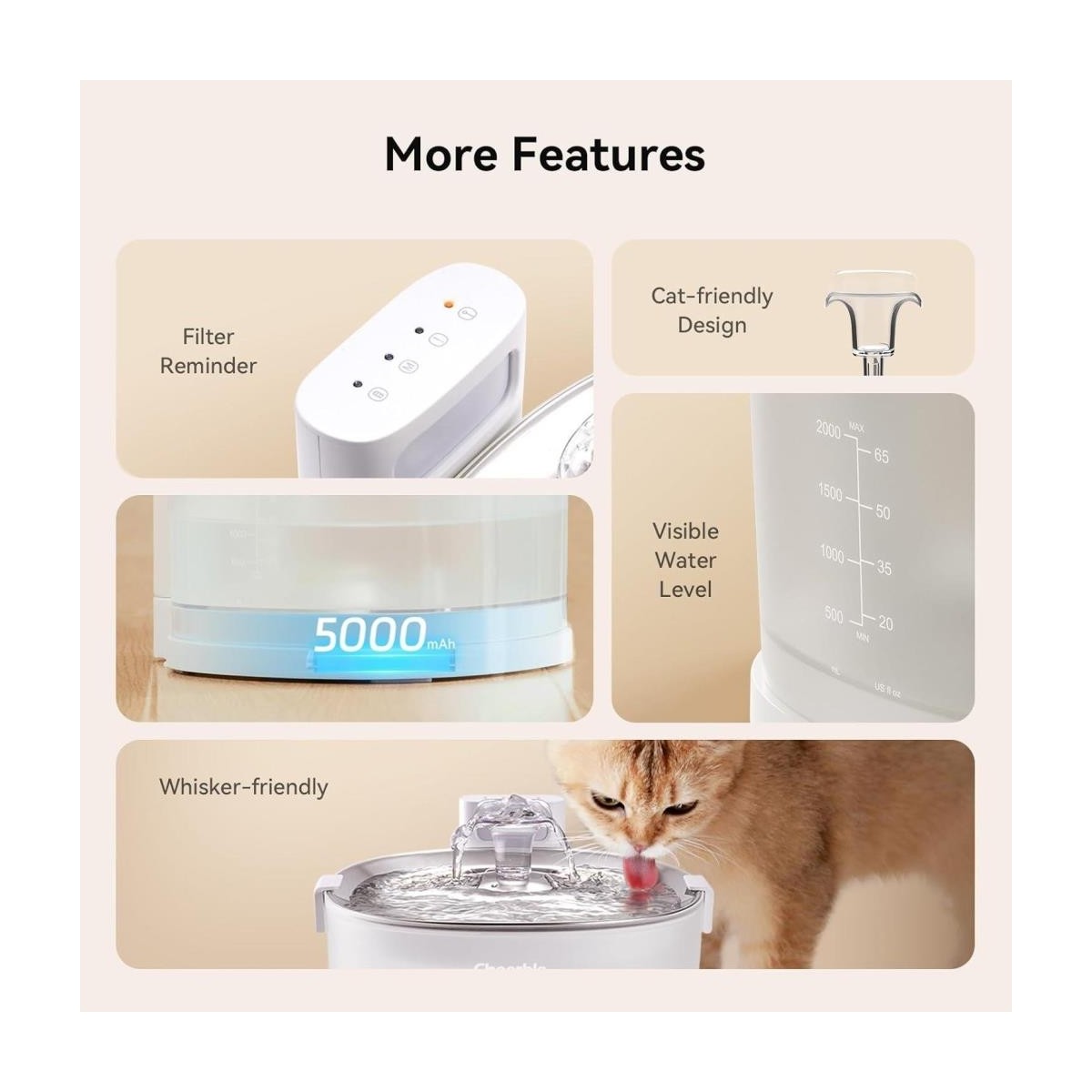 Cheerble E1+ Çelik Hazneli Şarjlı Otomatik Kedi Köpek Su Pınarı 2 Lt 22X20X18 cm