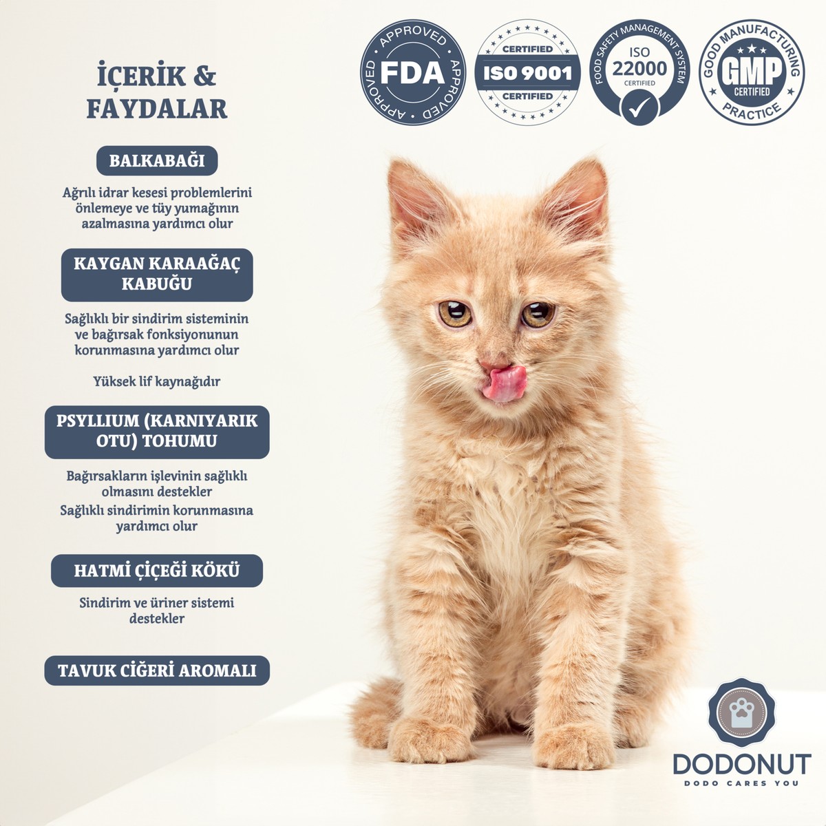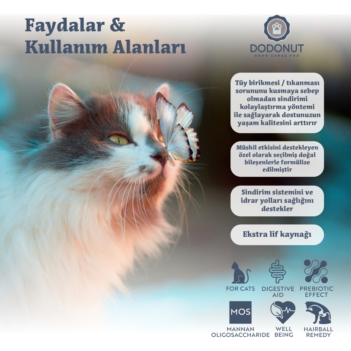 Dodonut LoveyMalt zengin doğal içeriği sayesinde tüylü dostunuzun tüy birikmesi veya tüy tıkanması sorununu kusma işlevine sebep olmadan gidermesini sağlayarak dostumuzun yaşam kalitesini arttırır.
