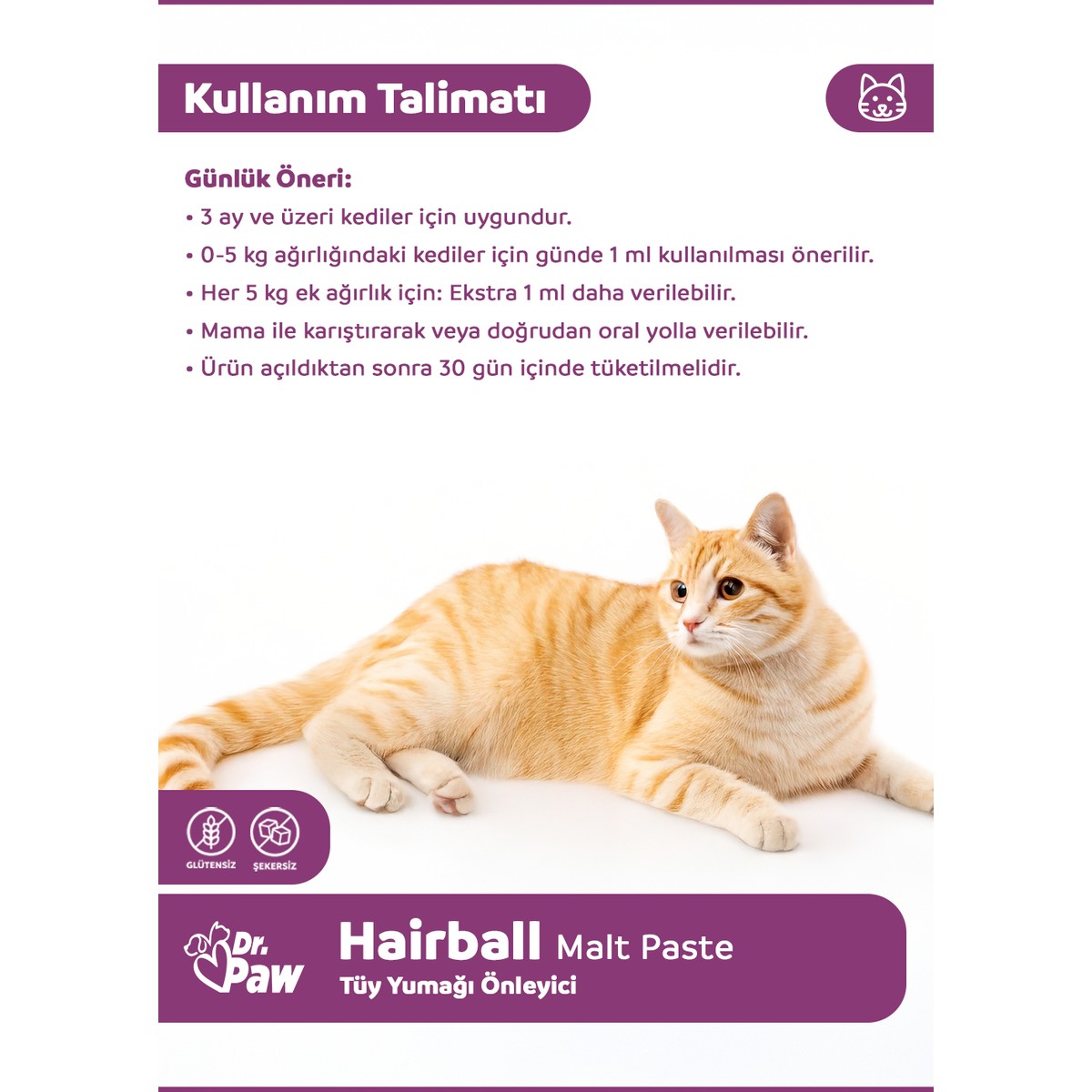 Dr. Paw – Hairball Malt Paste Kediler .çin Glütensiz ve Şekersiz Tüy Yumağı Önleyici 100 gr