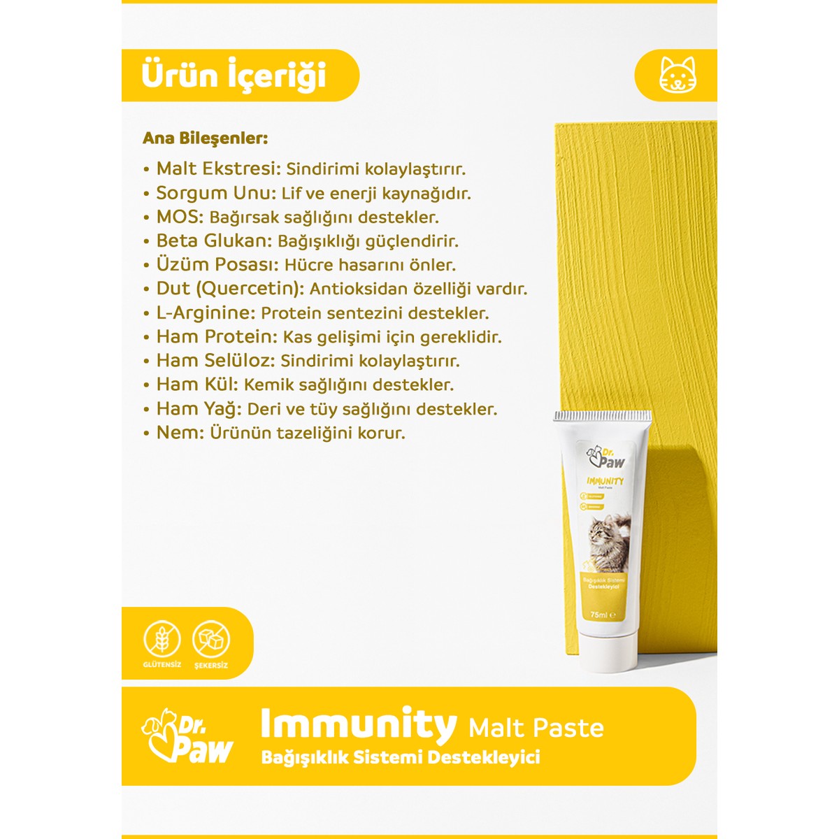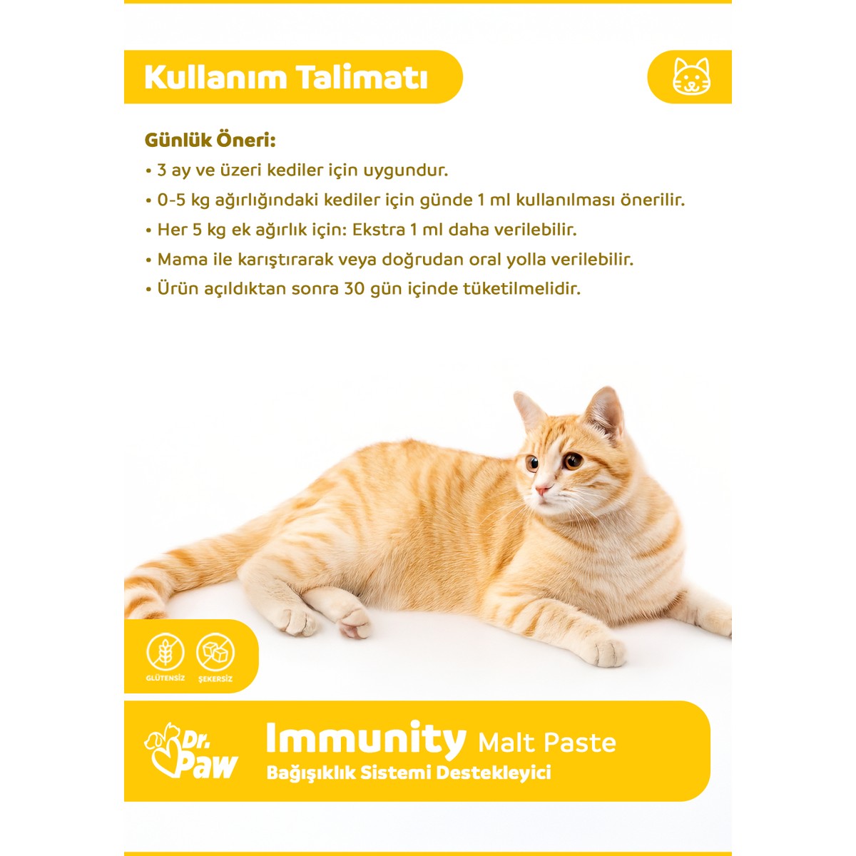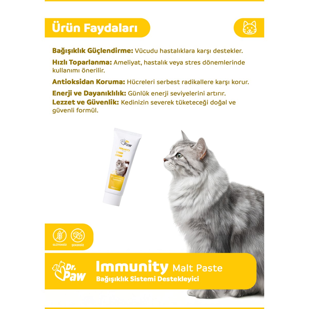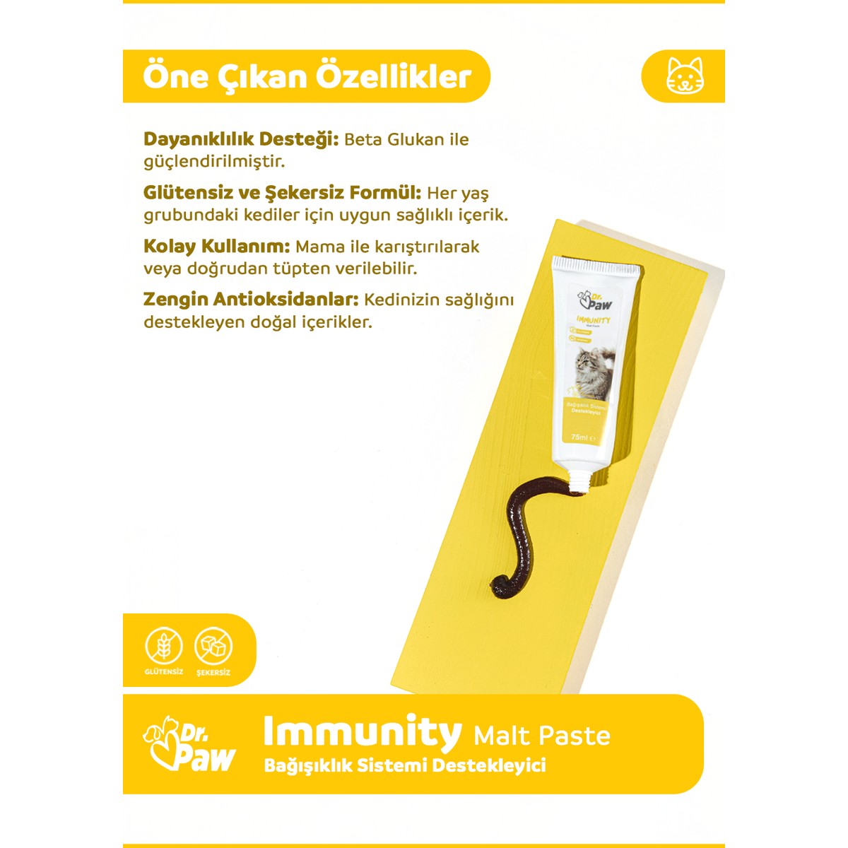 Dr. Paw – Immunity Malt Paste: Kediler için Glütensiz ve Şekersiz Gelişim Destek ve Immun Sistem Güçlendirici Malt Paste 100 gr
