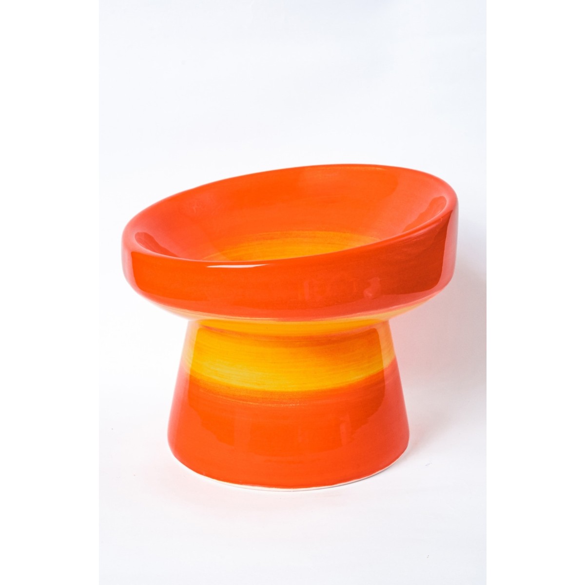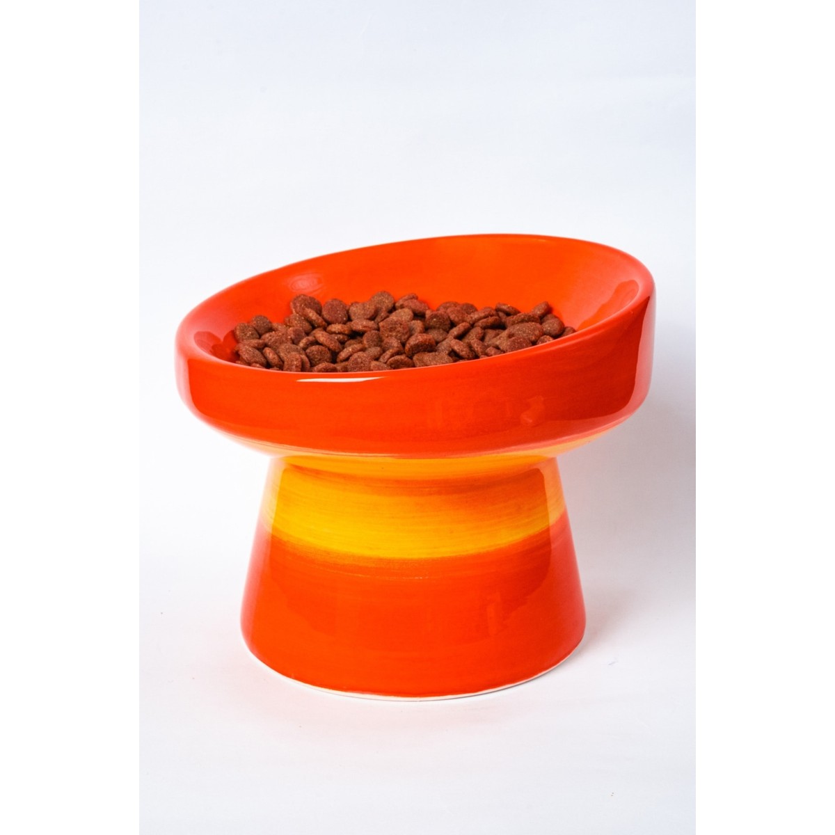 El Yapımı Seramik Turuncu Gökkuşağı Evcil Hayvan Mama ve Su Kabı