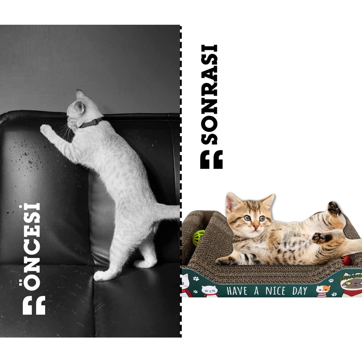 Rotipet Karton Kedi Tırmalama Desenli Koltuk Ceviz 59 x 30 x 25 cm