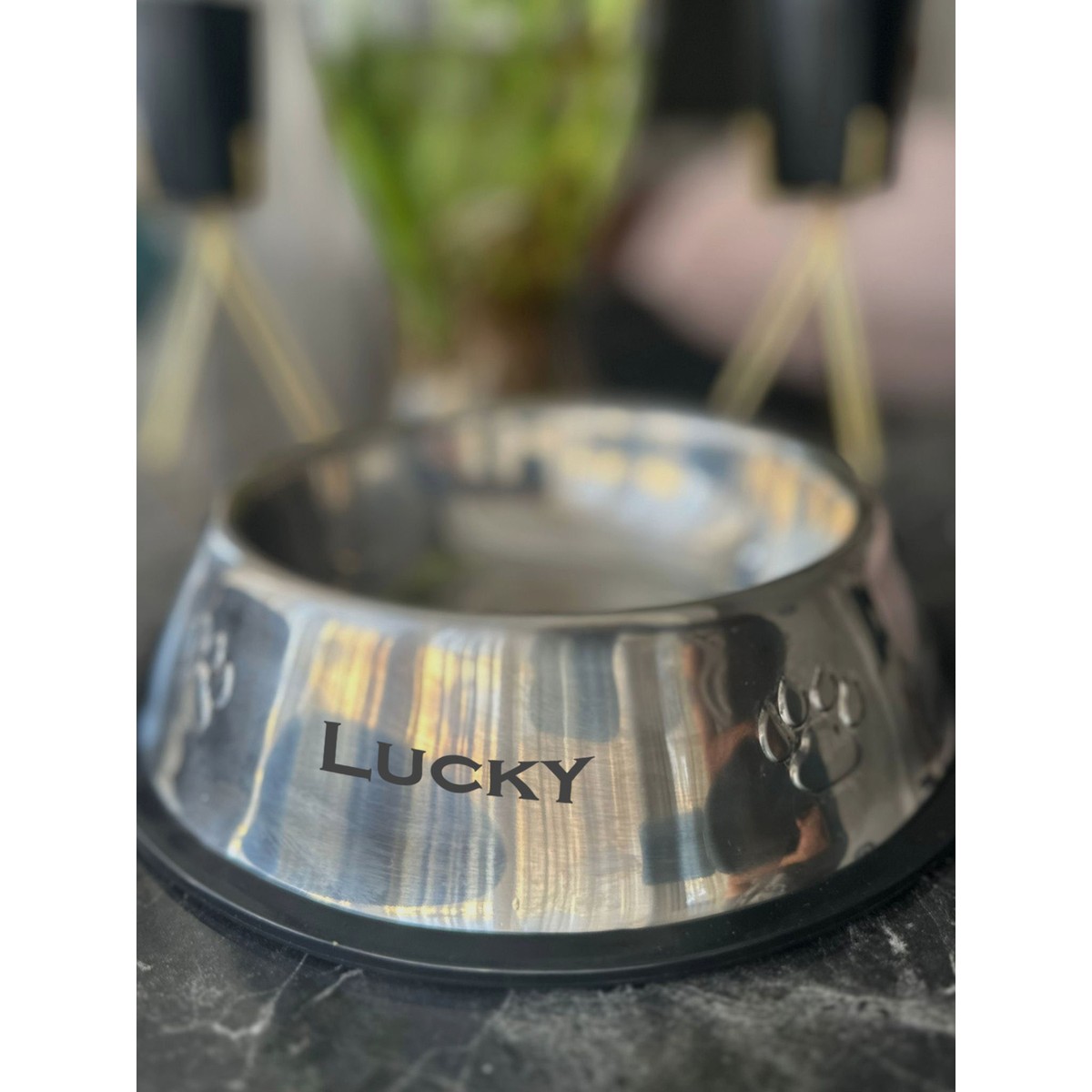 Evcil Hayvanlar Için Şık Tasarım Isimli Mama ve Su Kabı, Dayanıklı Çelik Malzeme