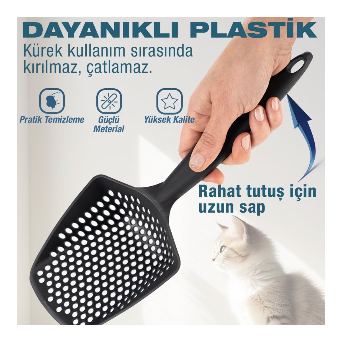 Kedi Kumu Küreği Hafif plastikten yapılmıştır. İNCE DELİKLİDİR. İnce Kum kullananlar için daha uygundur. Kalın Kum kullananlar için önerilmez.; Kedilerin ihtiyaçlarını giderdikten sonra kum kabındaki atıkların temizliğinde kullanılan kedi kum küreğidir. Kumun temiz kalmasını sağlar.