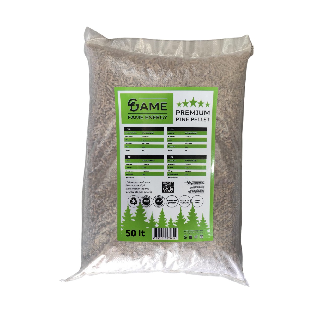 Fame Enerji % 100 Çam Peleti / Kedi Kumu 20 kg – 50 Lt 6 mm