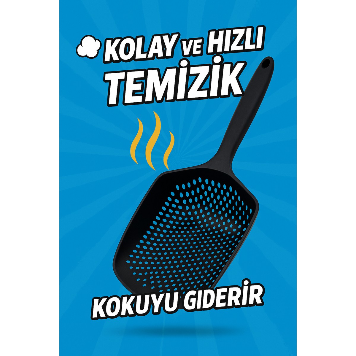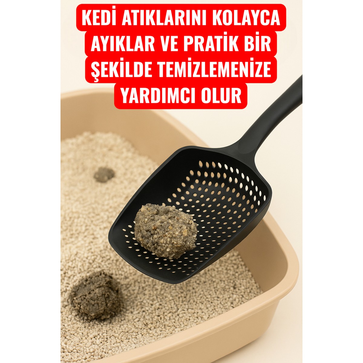 Siyah Kedi Kum Küreği, Kedi Kumu Temizleme Küreği Dayanıklı Kedi Tuvalet Küreği Elekli Kum Kürek