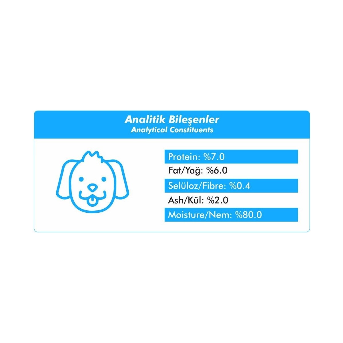 FOODLİNE KUZU ETLİ GRAVY SOS İÇERİSİNDE PARÇA ETLİ YAVRU KÖPEK KONSERVESİ 400 G 6 ADET İÇİNDEKİLER / COMPOSITION Et ve et ürünleri (kuzu eti %4), bitkisel ürünler, mineraller ve vitamin katkıları. Meat and meat derivatives (lamb min. 4%), plant products, minerals and vitamins. ANALİTİK BİLEŞENLER / ANALYTICAL CONSTITUENTS Protein %7.0, Fat /Yağ %6.0, Fibre /Seluloz %0.4, Ash/ Kül %2.0, Moisture /Nem %80.0 BESİNSEL TAKVİYELER / DIETETIC ADDITIVES Vitamin A 1000 IU/Kg, Vitamin D3 100 IU/Kg, Vitamin E 13 IU/Kg Beslenme tavsiyeleri: Önerilen günlük miktar beslenme tablosunda belirtilmiştir. Her zaman bir kase taze su verin, oda sıcaklığında muhafaza ve servis edin. Açıldıktan sonra buzdolabında saklayın ve 72 saat içinde tüketin. Konserve deforme olmuşsa kullanmayın. Ambalajın üzerindeki nden önce tüketiniz. ve lot numarası için kapaktaki koda bakın.