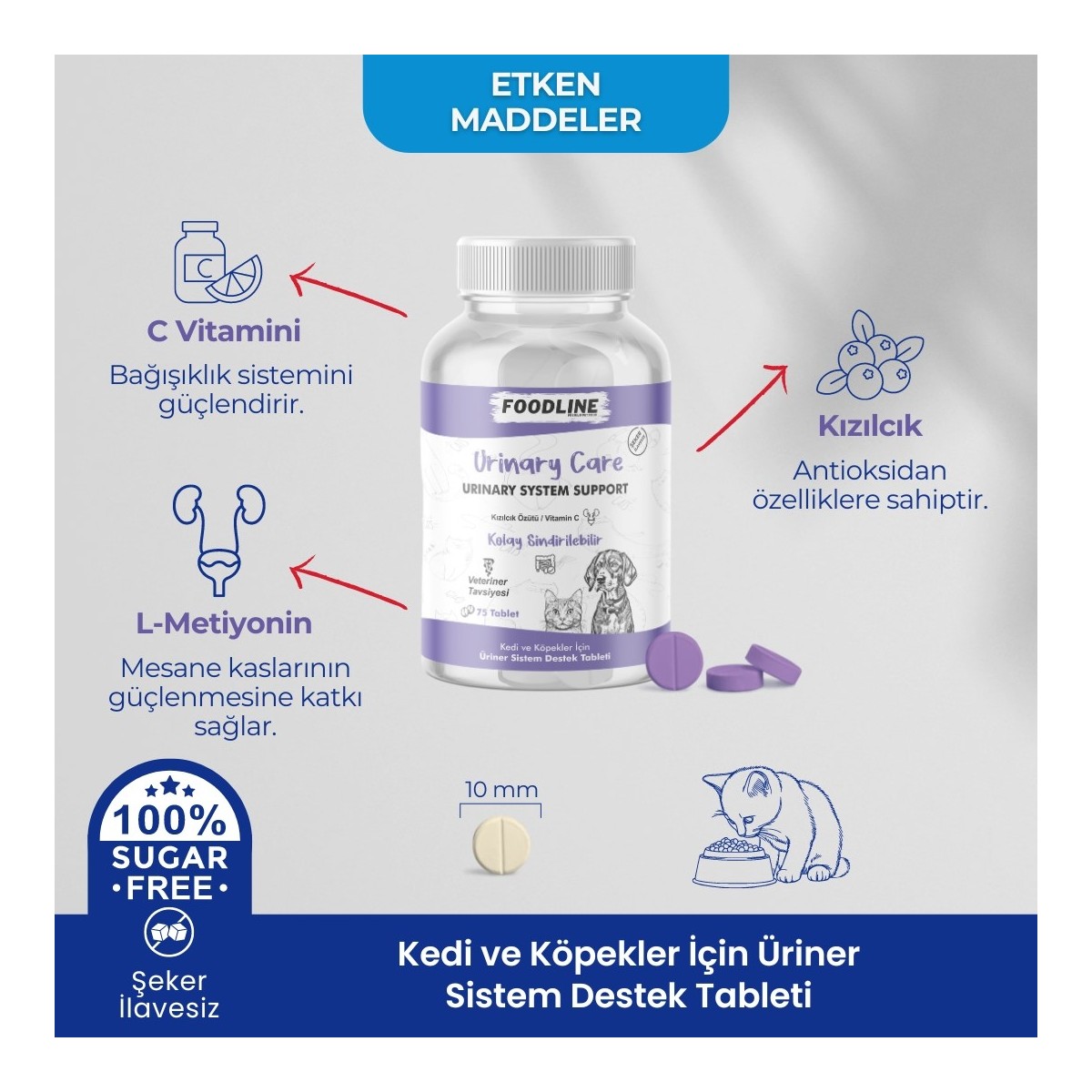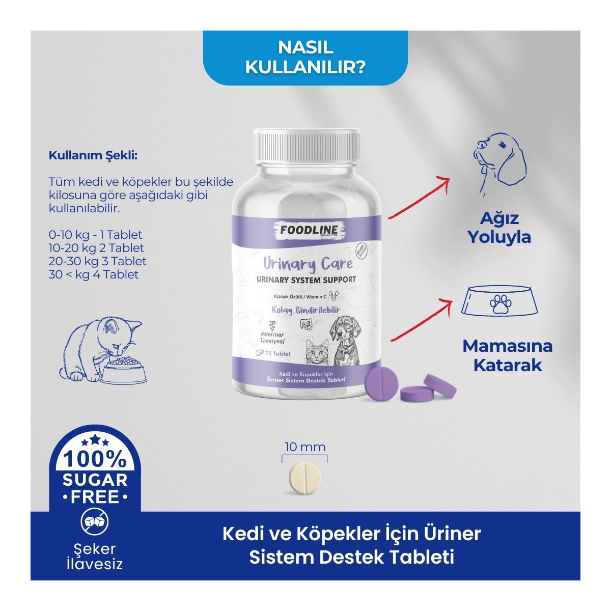 Foodline Urinary Care 75 Tablet | Kedi ve Köpekler Için Idrar Sağlığını Destekleyici