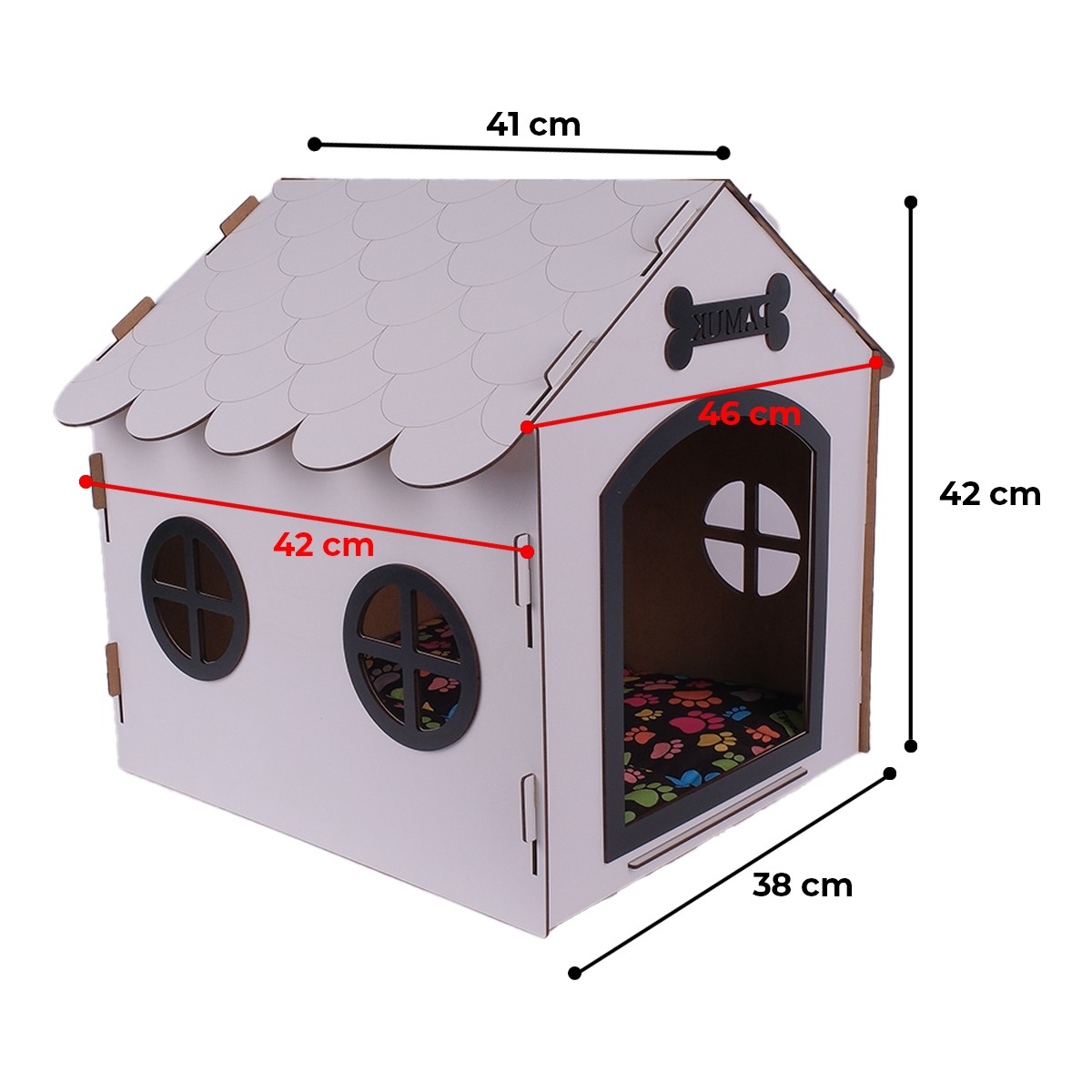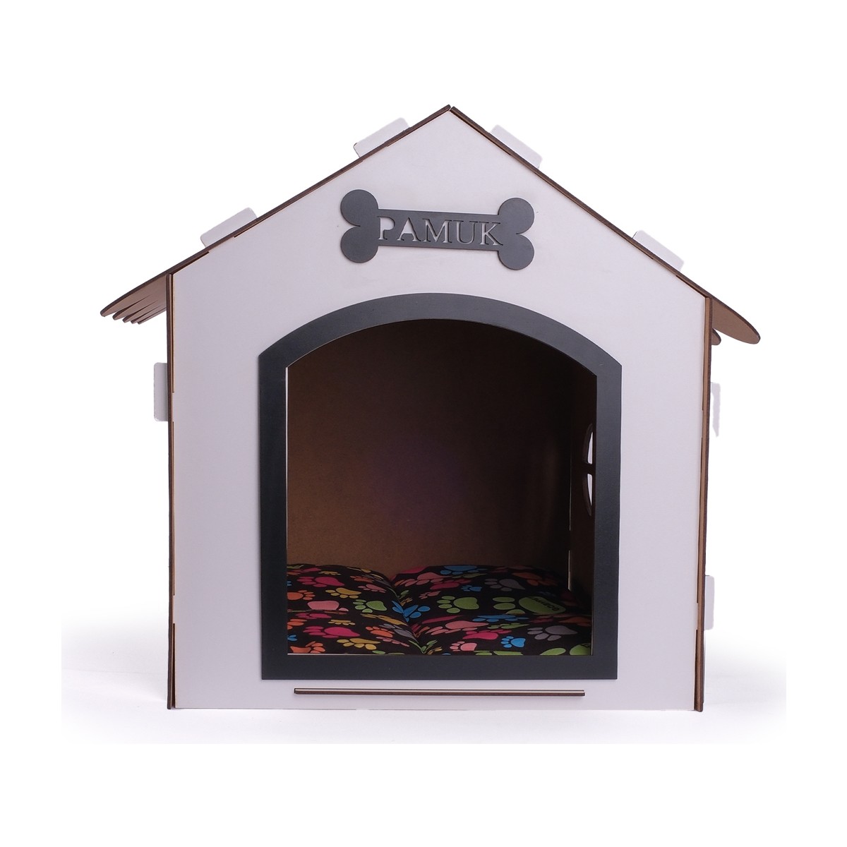 Ahşap Dekoratif Köpek Evi-Kulübesi, Küçük Irk Köpekler İçin Kulübe, Köpek Kulübesi Beyaz-Siyah