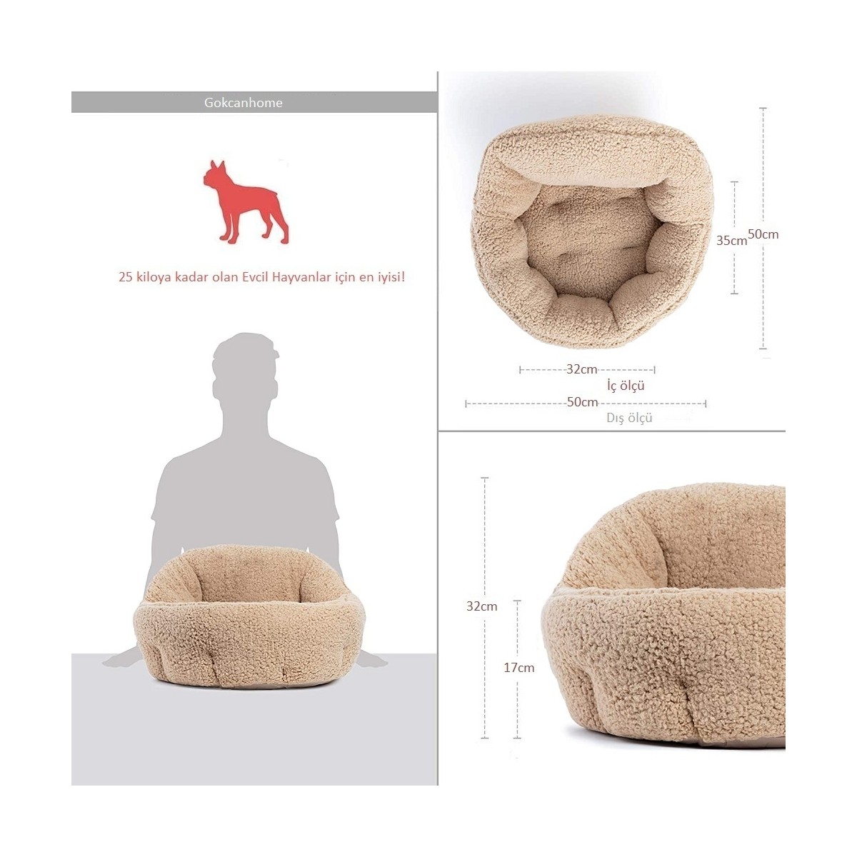 Gökcan Home Bej Yumuşak Dokulu Kedi ve Köpek Yatağı (50X50X32CM)
