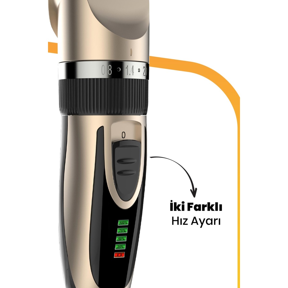 2 kademeli hız ayarlı, pil göstergesi, seramik bıçak olduğundan çok beğendim. Longhair kedimin tüylerini takılmadan kesiyor. Güçlü motor olduğu çok belli. Ayrıca çok sessiz çalışıyor. Sonuç mükemmel.