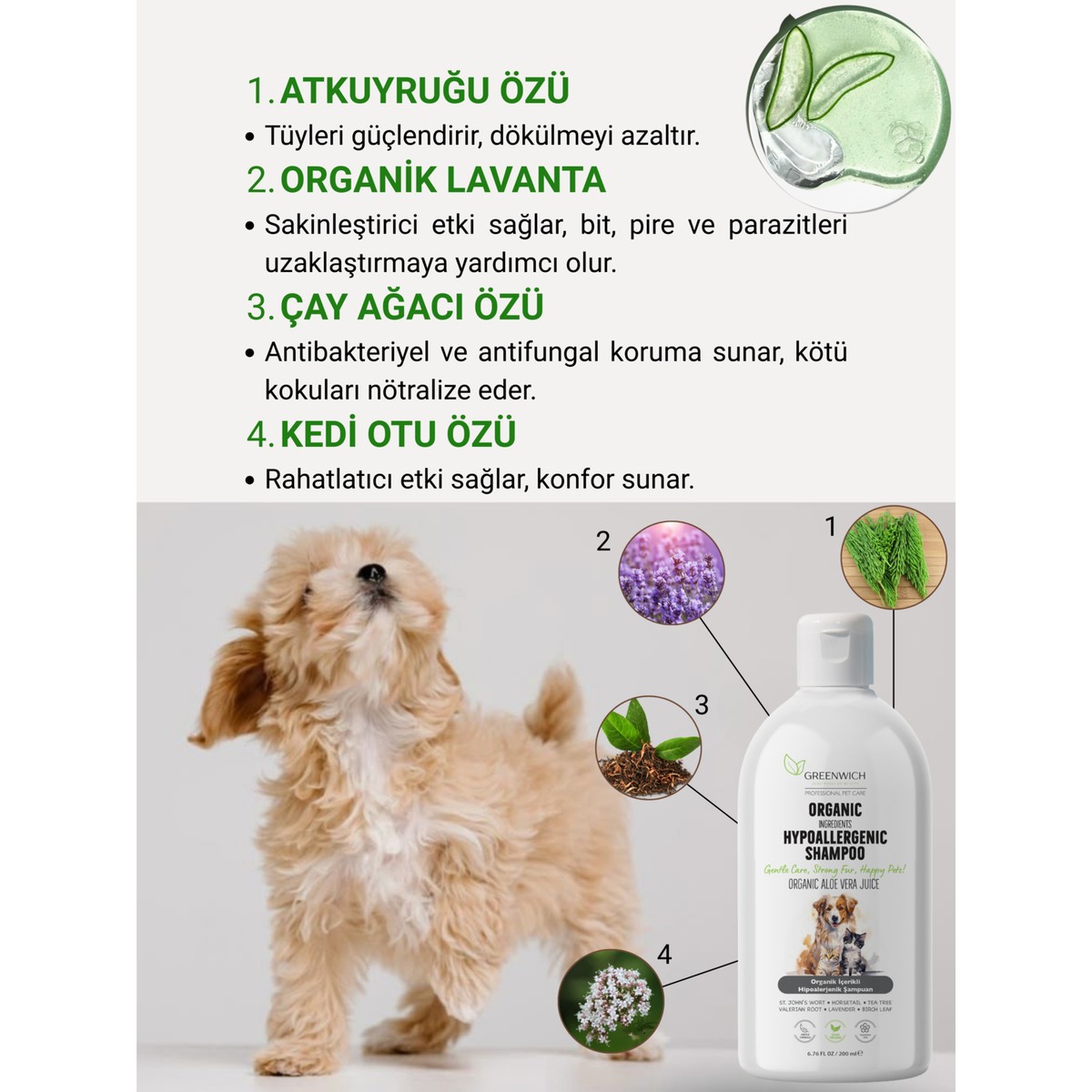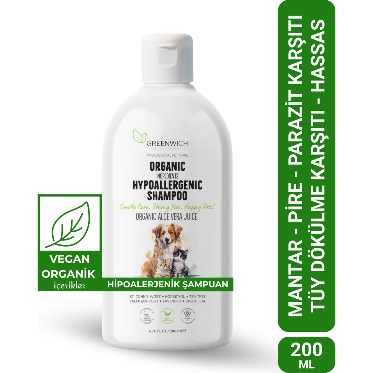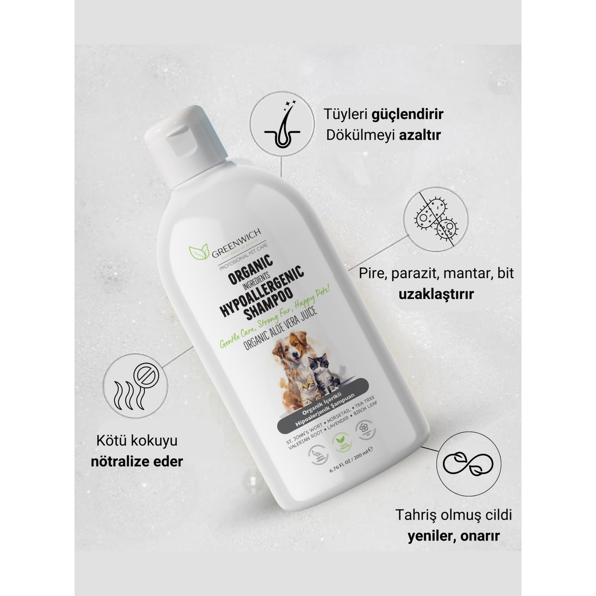 Greenwich Hipoalerjenik Şampuan 200 ml | Tüy Dökülme | Parazit Pire Mantar Uzaklaştırıcı | Kedi Köpek
