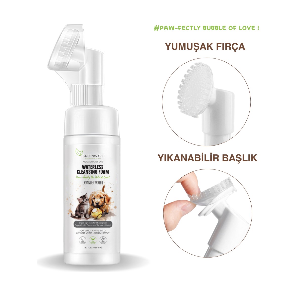 Greenwich Pati Köpük 150 ml | Kuru Şampuan | Tüy Dökme Karşıtı Pire Kene Parazit Uzaklaştırıcı | Kedi Köpek