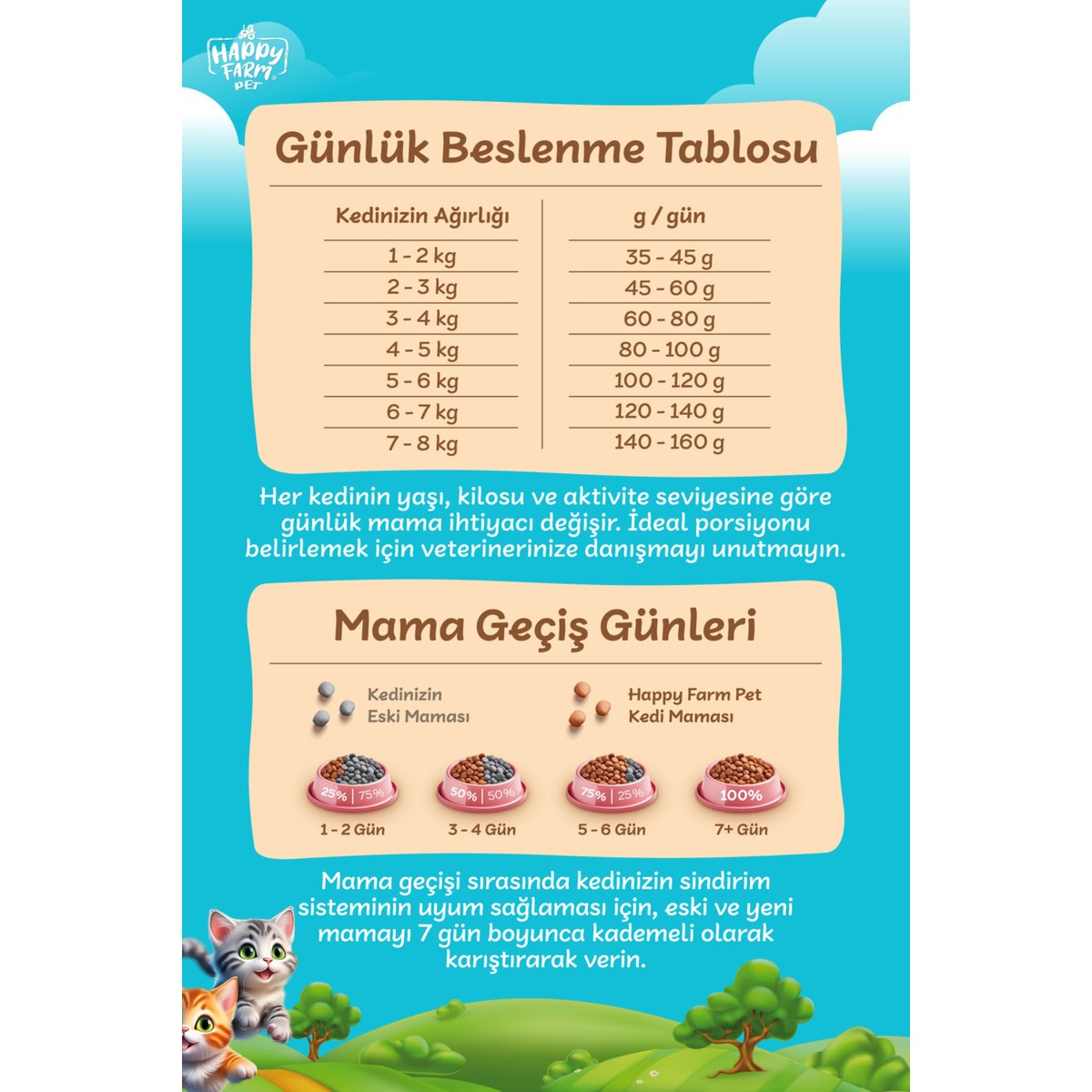 Happy Farm Etli Kedi Maması 15KG — yetişkin kediler için dengeli ve besleyici bir mama seçeneği sunar. Yüksek protein oranı ve zengin vitamin-mineral içeriği ile kedinizin günlük enerji ve sağlık ihtiyaçlarını karşılar.