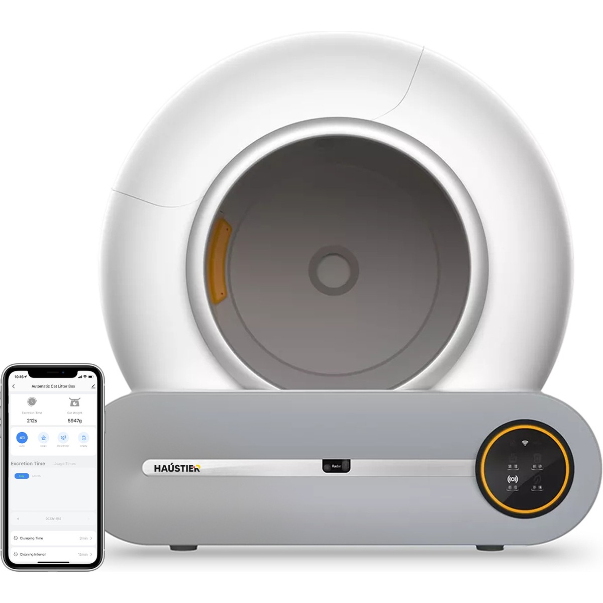 Haustier CB001 Akıllı Otomatik Kedi Tuvaleti, APP ile Kontrol, 75lt İç Hazne, 7lt Çöp Haznesi