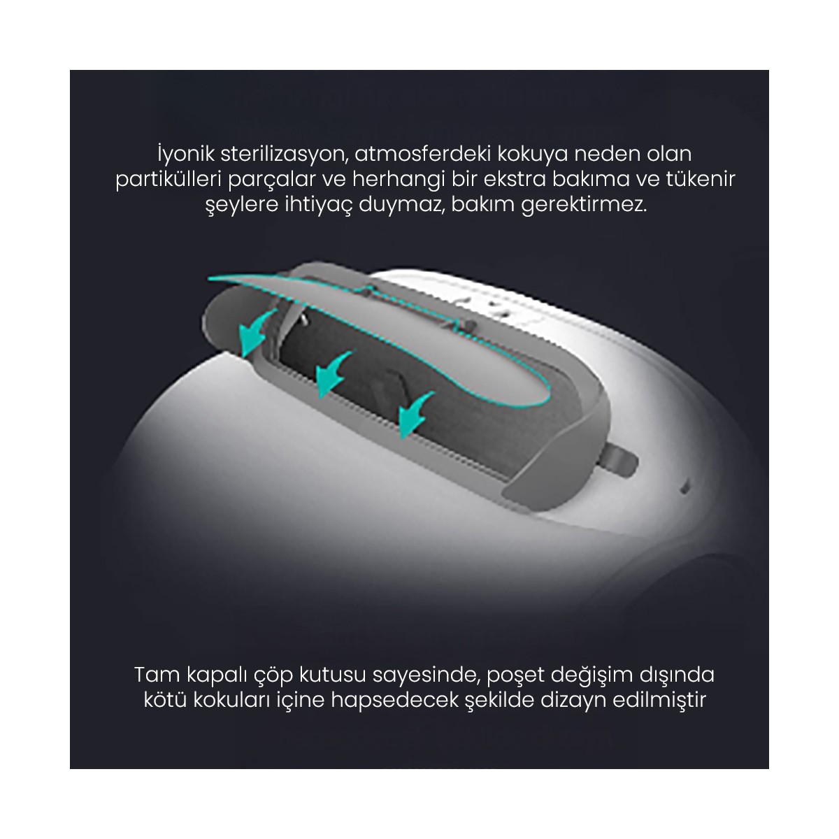 Topaklanma süresi farklı olan bir çok kumda denedim ve süreyi doğru ayarlarsanız muhteşem bir cihaz, ne koku var ne toz. Koku giderici otomatik devreye giriyor ve 2 günde poşeti dolduğunda gösteriyor değiştiriyorum 2 dk almıyor değiştirmesi.