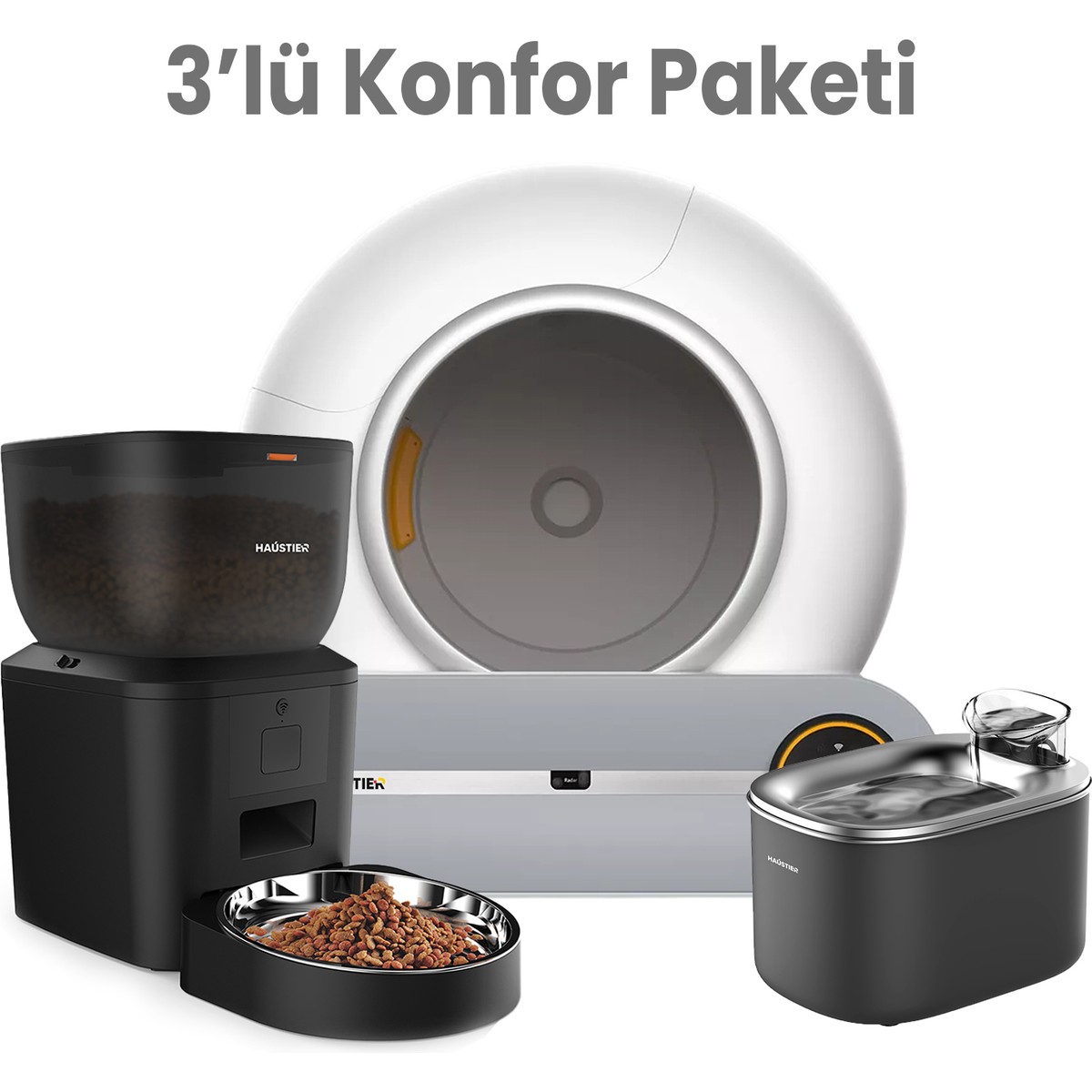 Haustier BF01 Akıllı Wifi Uygulamalı Otomatik Kedi Tuvaleti, Akıllı Mama Kabı, Kedi Su Sebili 3’lü Set