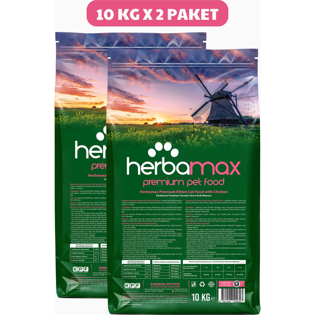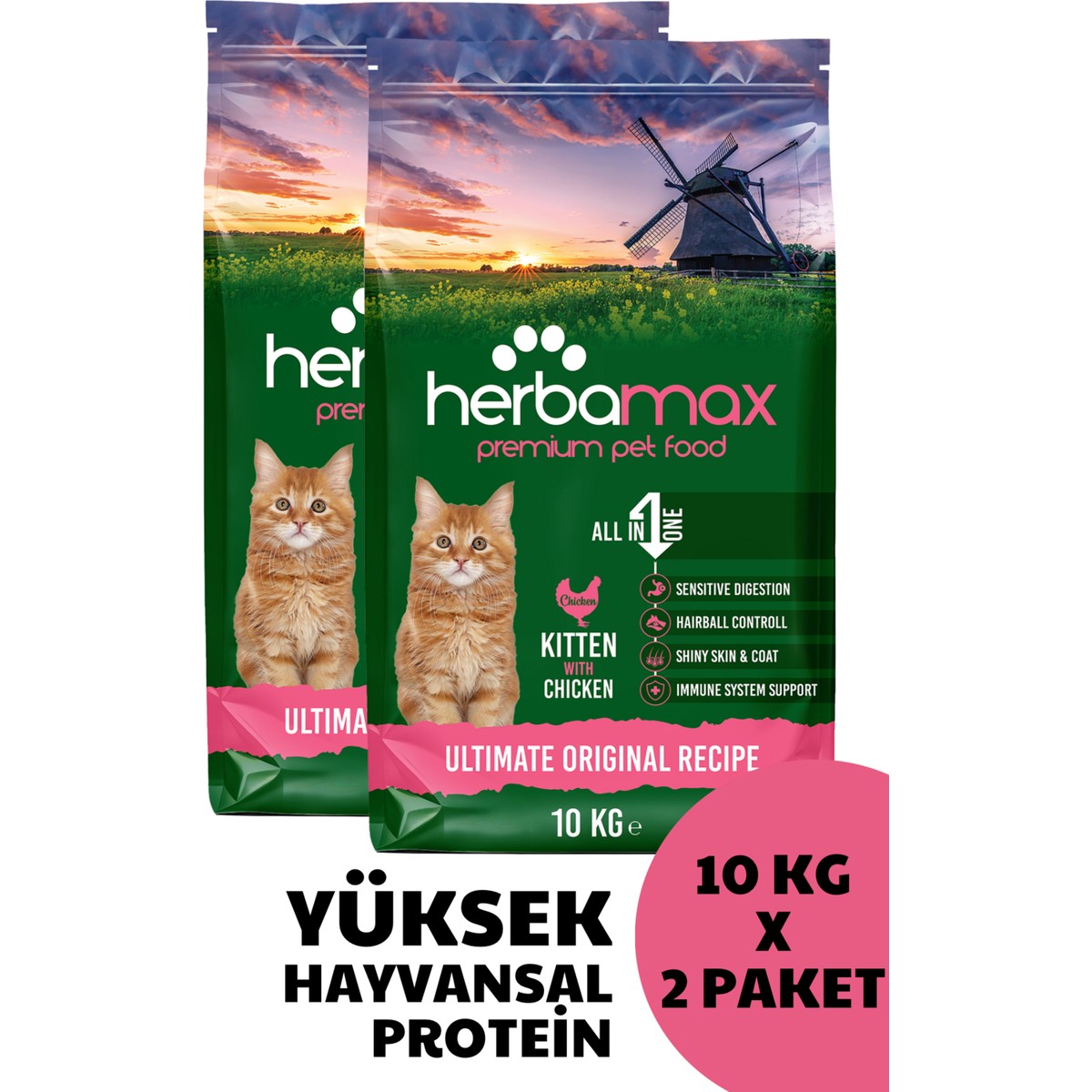 Herbamax Gelişim Destekleyici Özellikte Tavuklu ve Pirinçli Yavru Kedi Maması 20kg (2X10kg)