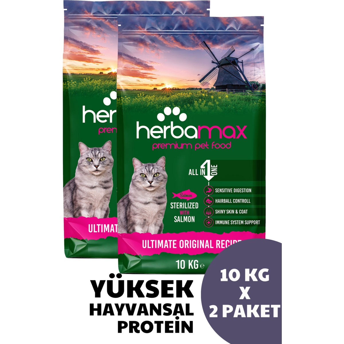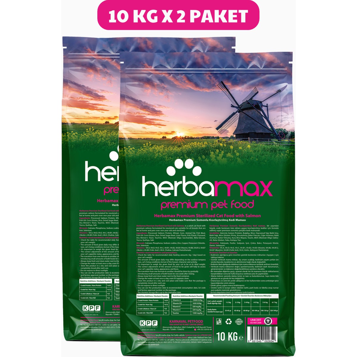 Herbamax Kısırlaştırılmış Somonlu Ve Pirinçli Yetişkin Kedi Maması 20Kg (2X10Kg)