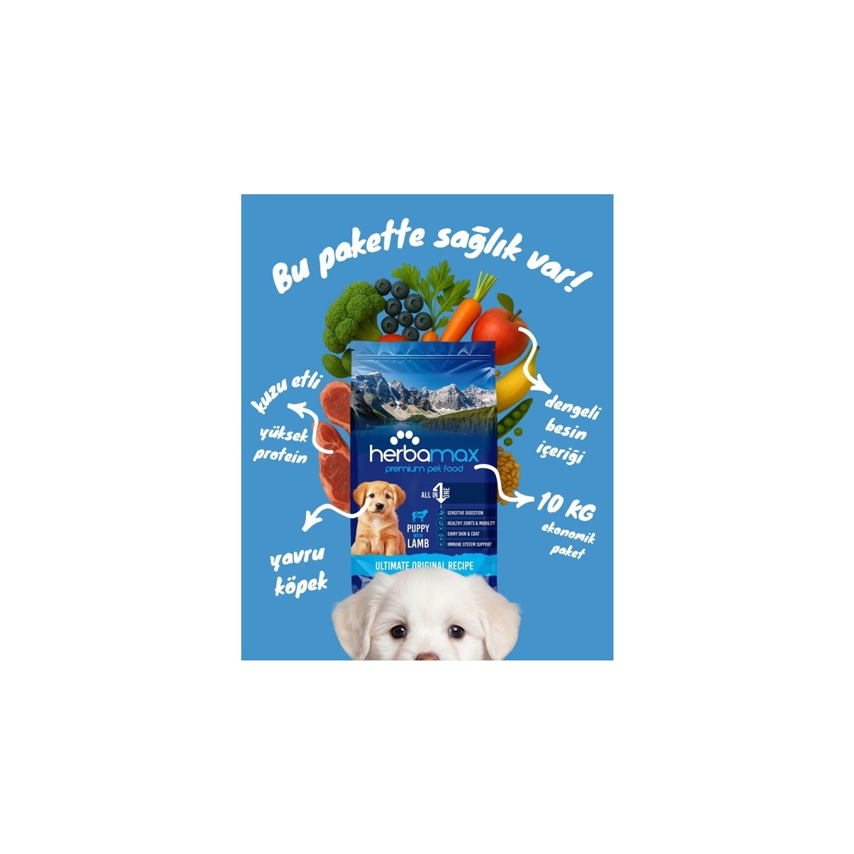 HerbaMax Premium Puppy Kuzu Etli ve Pirinçli Yavru Köpek Maması 10 Kg – Tüm Irklar İçin, Yüksek Proteinli