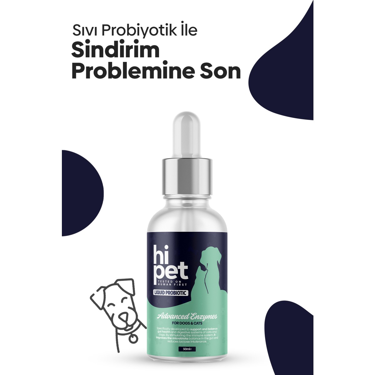 HiPet Sıvı Probiyotik Köpek Takviyesi 50 ml – Lactobacillus Plantarum ve Doğal Yağ ile Sindirim Sağlığı ve Bağışıklık Güçlendirme