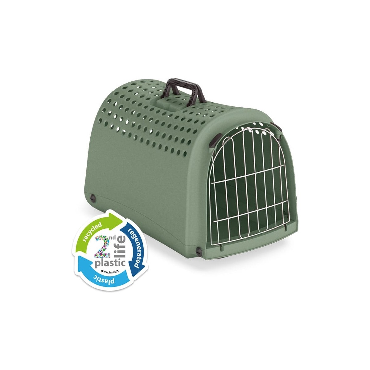 IMAC Linus 2nd Life Yeşil Evcil Hayvan Taşıma Çantası, küçük ırk köpekler ve kediler için tasarlanmış, çevre dostu bir taşıma çözümüdür. 52,5x32x34,5 cm ölçülerindeki bu model, geri dönüştürülmüş plastikten üretilmiştir, böylece hem dayanıklı hem de çevreye duyarlıdır. Üstten açılabilir tasarımı sayesinde evcil hayvanınıza kolayca ulaşabilir, ona mama verebilir veya sadece sevebilirsiniz. Ön metal kapak ve yan havalandırma delikleri, mükemmel hava akışı sağlayarak yolculuk sırasında konforu artırır. Taşıma kulbu, çantayı rahatça taşımanıza olanak tanır. Farklı renk seçenekleriyle stilinize ve evcil hayvanınızın kişiliğine uyum sağlar. IMAC Linus 2nd Life, hem fonksiyonel hem de estetik bir taşıma çantası arayanlar için ideal bir tercihtir.